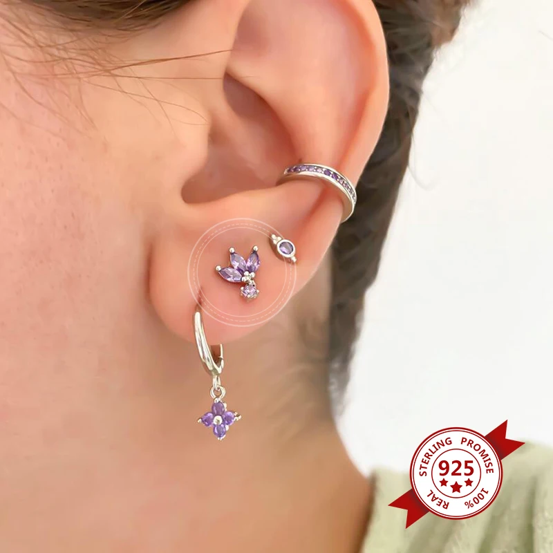 Модные серьги-гвоздики из стерлингового серебра 925 пробы с тремя цирконами, черные/белые/фиолетовые серьги-гвоздики для женщин, золотые и серебряные маленькие украшения для пирсинга