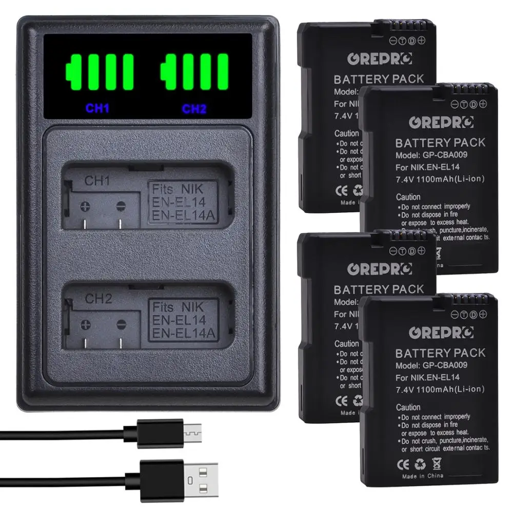EN-EL14 EN-EL14a аккумулятор камеры + светодиодный двойной зарядное устройство с портом type-C