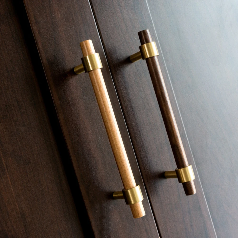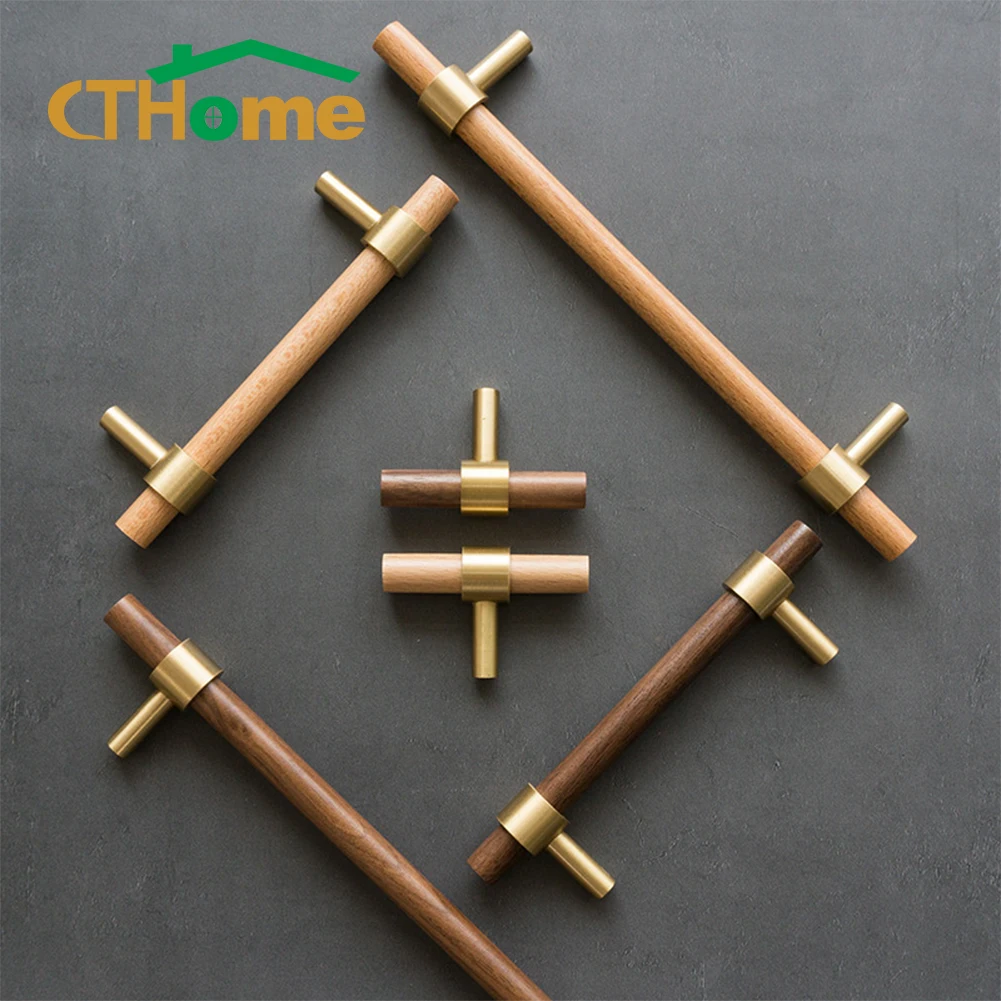 Деревянная ручка для мебели, 1 шт., латунные дверные ручки для кухо...