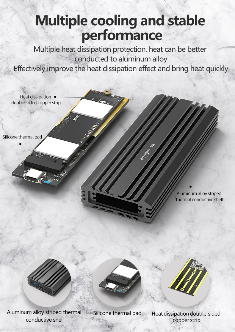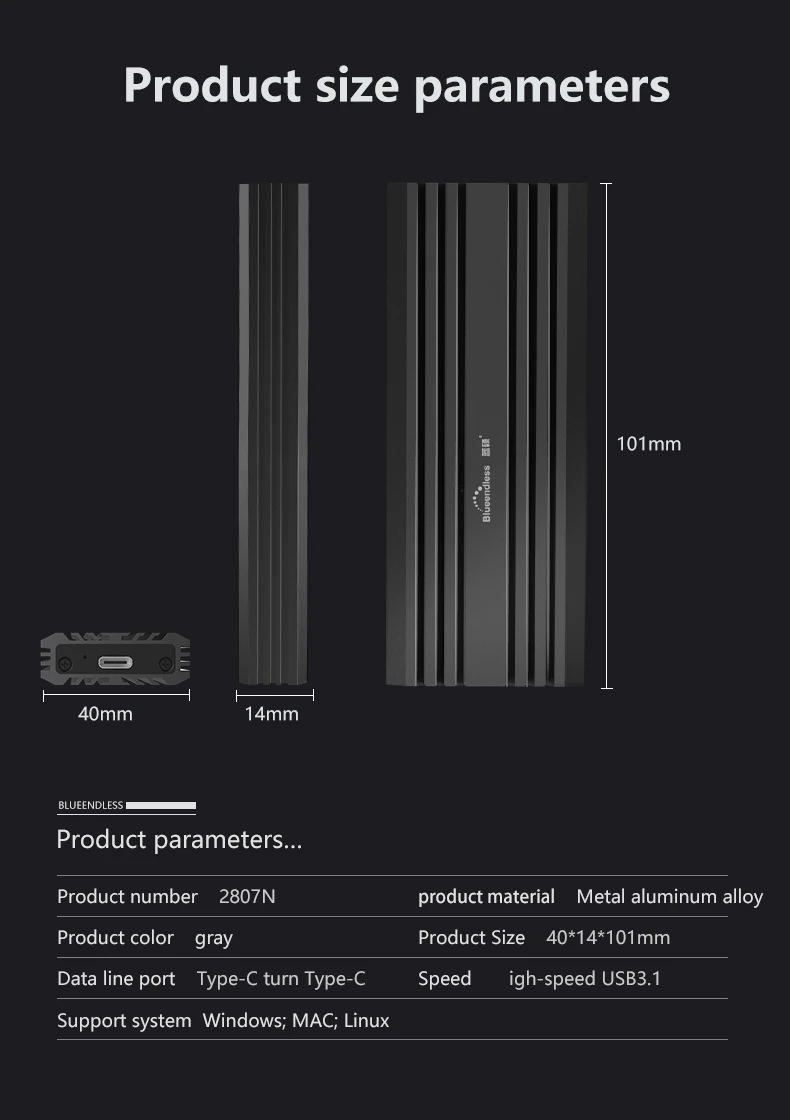 Чехол для внешнего жесткого диска Blueendless M2 SSD, USB 3,1, 10 Гбитс, высокоскоростной алюминиевый корпус NVME
