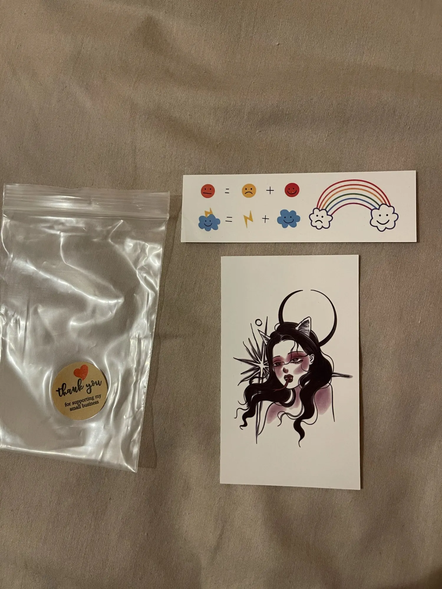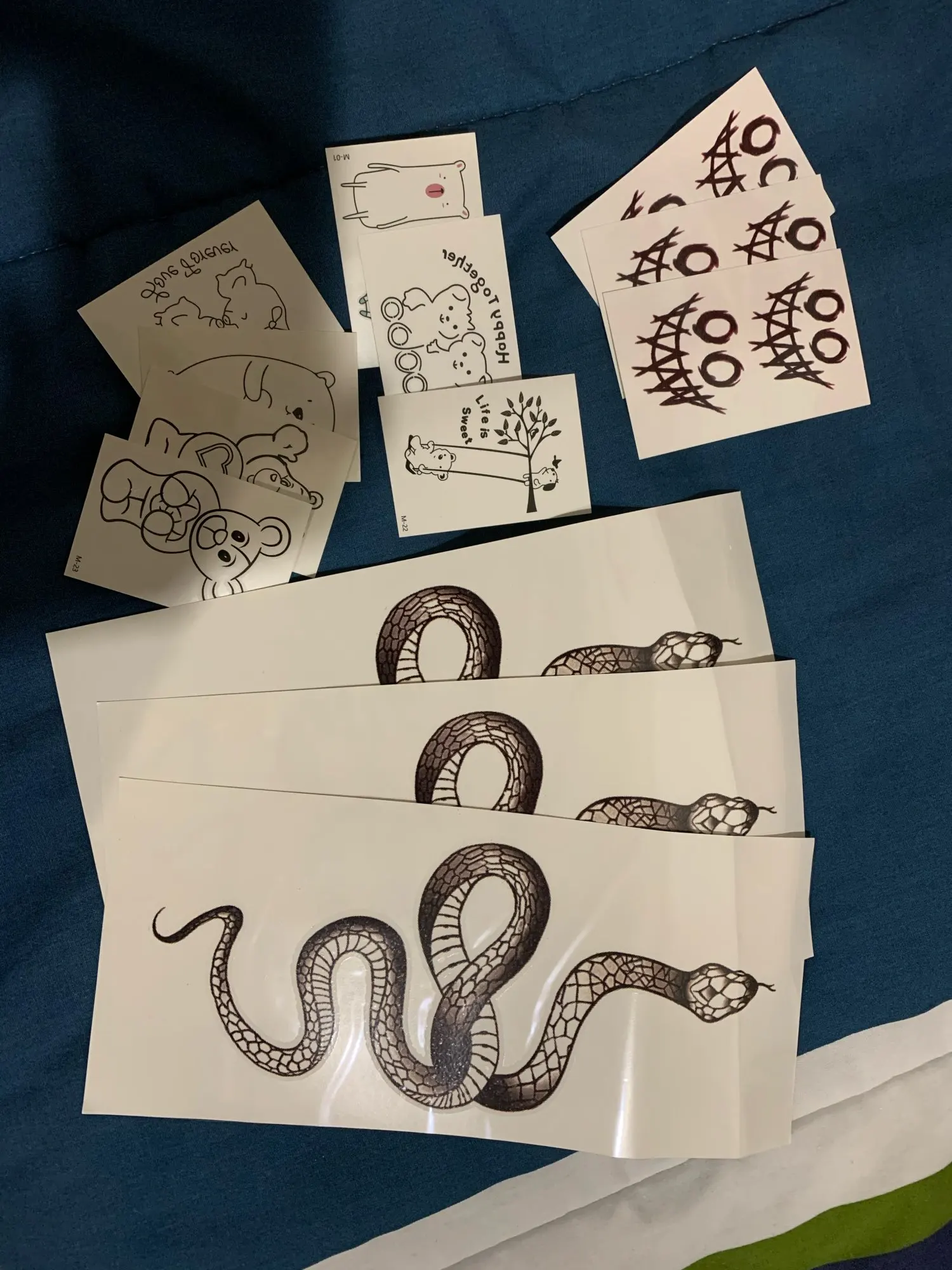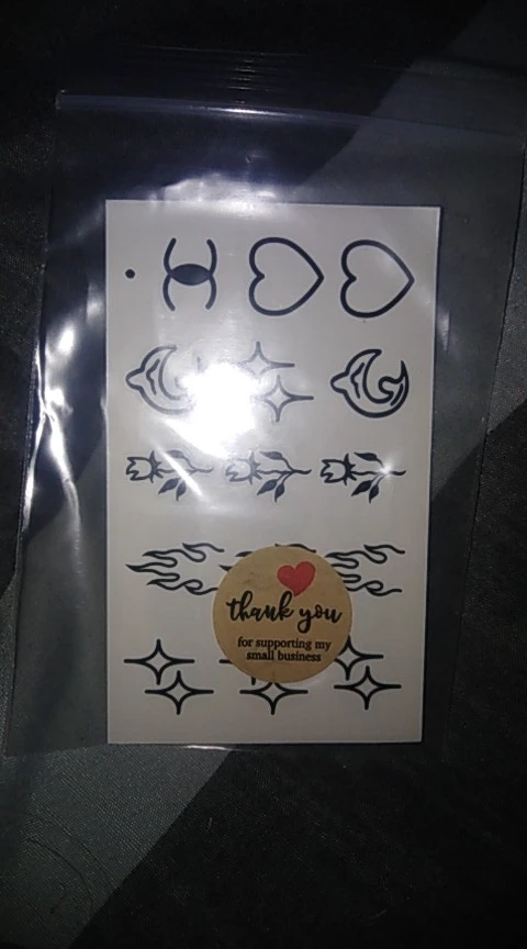 тату очень красивые, всё как на картинке. продавец в подарок положил ещё несколько листов с тату, за что отдельное спасибо. заказом очень довольна :3 the tattoo is very beautiful, everything is as in the picture. the seller put a few more sheets with a tattoo as a gift, for which special thanks. i’am very happy with the order :3