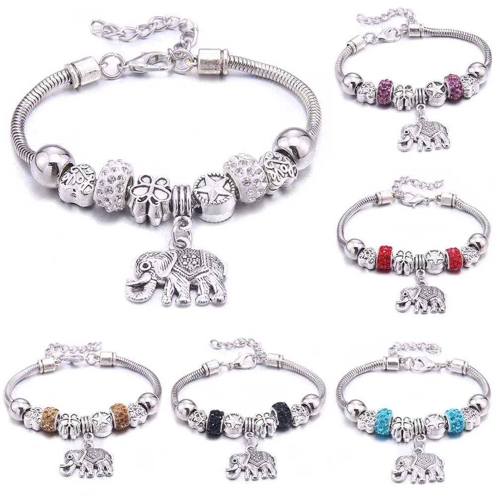 Шарм-браслет и браслеты ювелирные изделия 6 цветов хрустальные бусины Слон Бисероплетение Браслеты бренды браслеты Женщины Девушки дружбы подарок