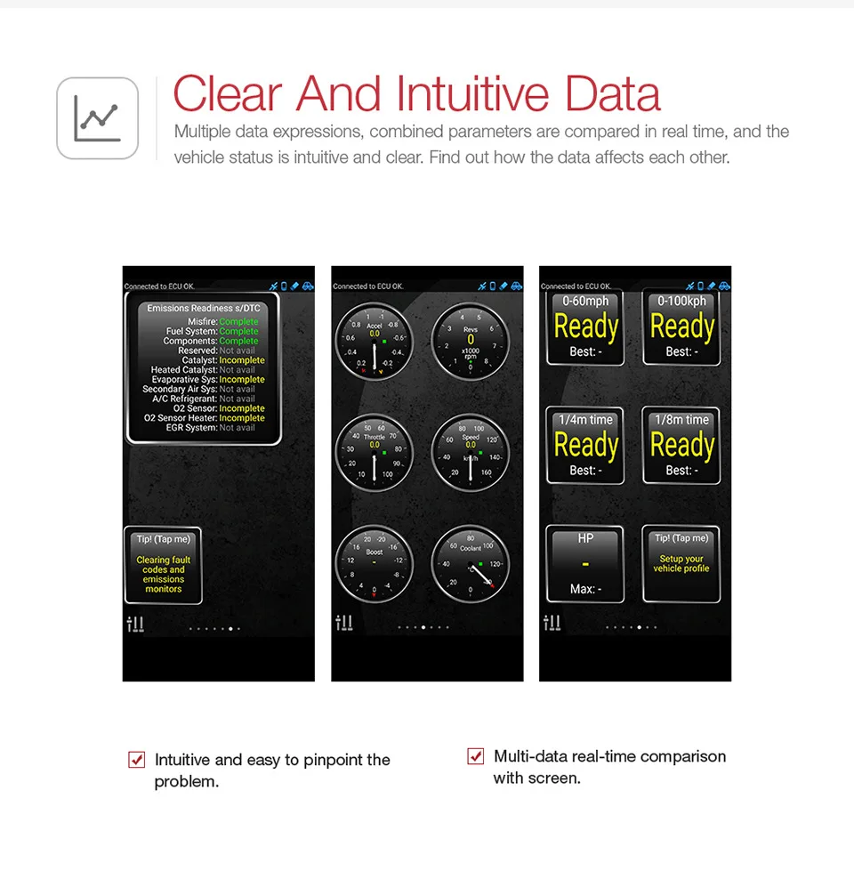 Он соответствует полным спецификациям OBD II / EOBD. Различные модели беспроводного подключения для подключения вашего смартфона или планшета. Он считывает данные двигателя автомобиля в реальном времени, такие как скорость двигателя, время зажигания, топливная отделка, температура воды, расход топлива. Он поддерживает различные приложения OBD II.