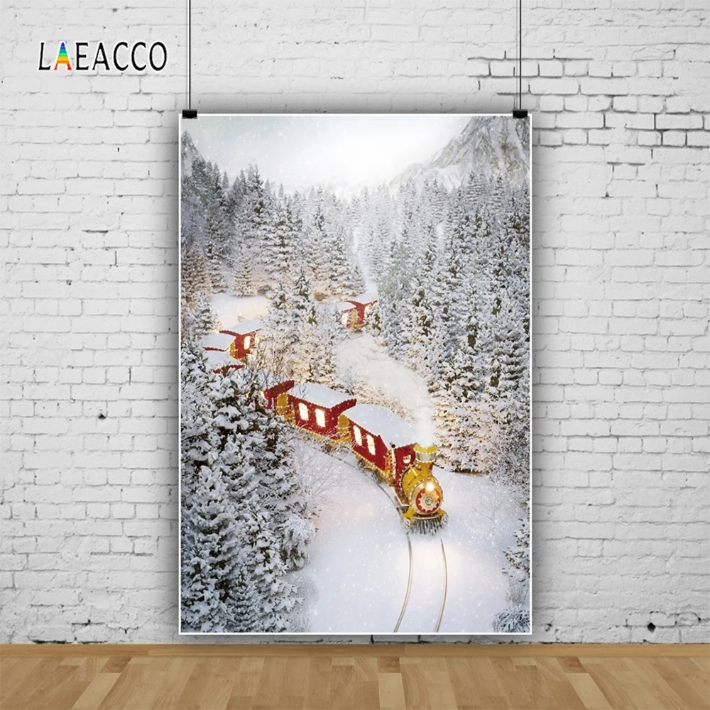 Laeacco зимние фоны для фотосъемки снежные сосновые Деревья Поезд деревня Фото фоны Рождественский Фотофон для фотостудии