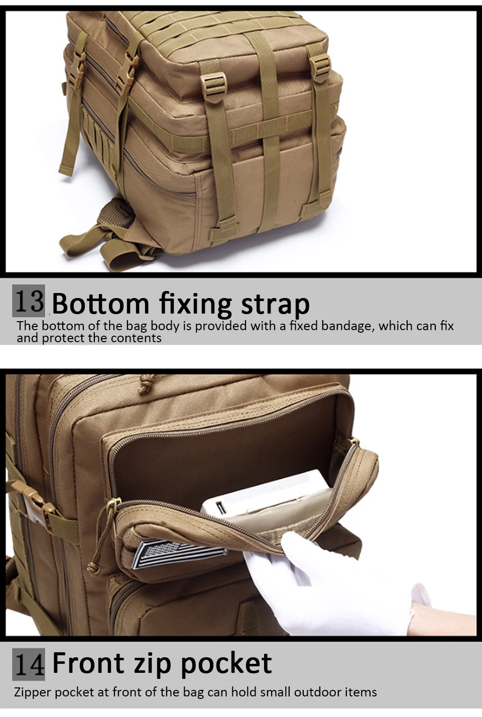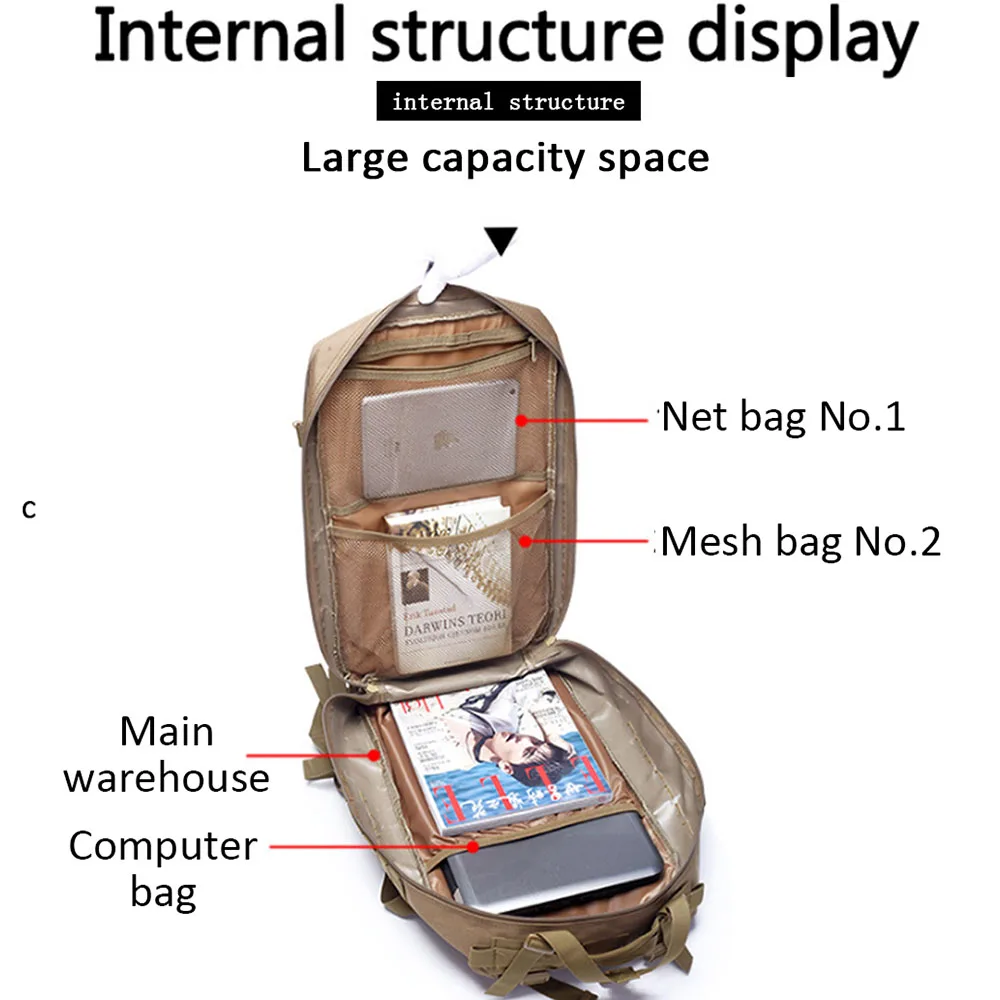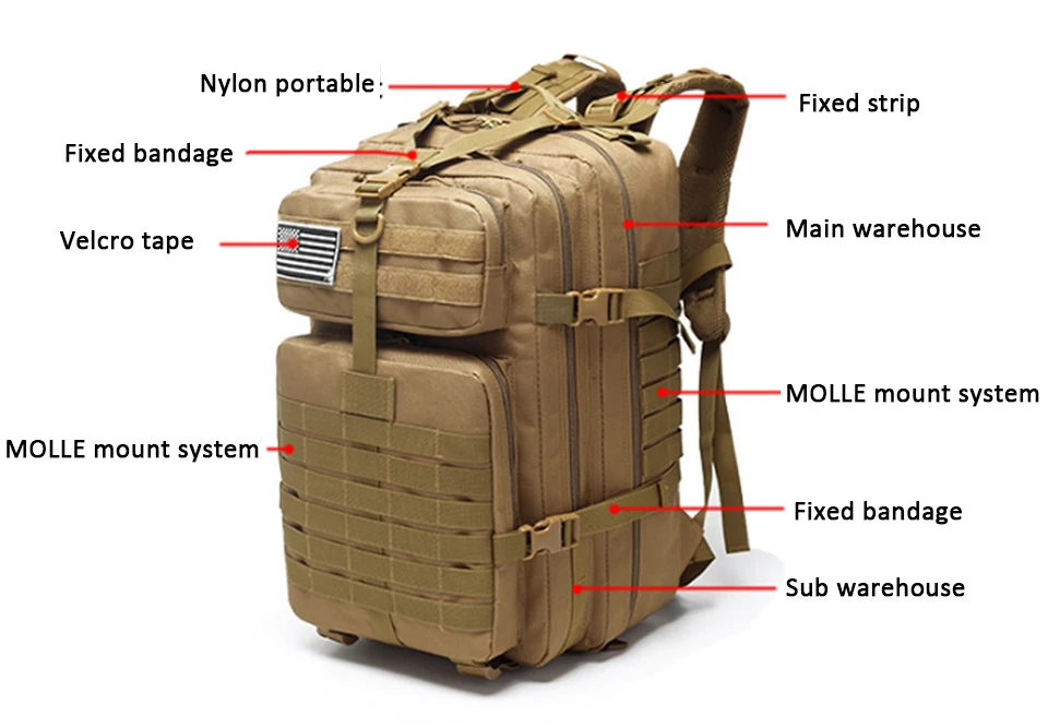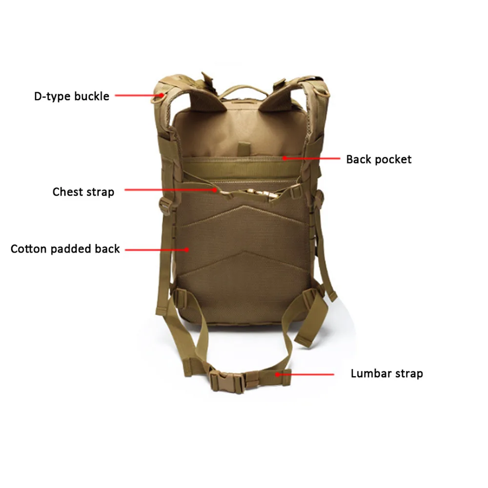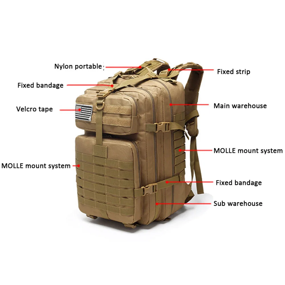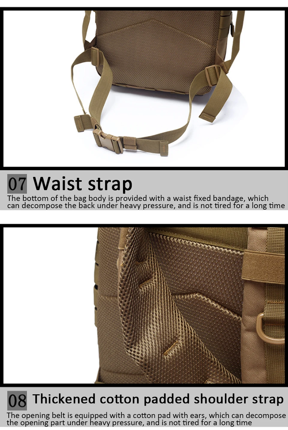 Этот Тактический штурмовой рюкзак может использоваться как 3 дня штурмовой рюкзак, сумка, сумка-рюкзак, сумка-рюкзак, сумка, военный рюкзак, охотничий рюкзак, рюкзак выживания, армейский рюкзак, трекинговый рюкзак или дневная упаковка крой, подходит для ежедневного использования.