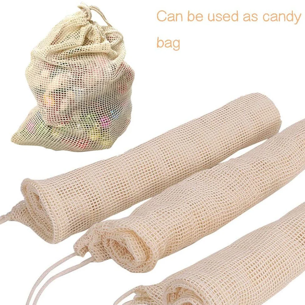Экологичная многоразовая хлопковая сетка, сумка для хранения овощей, хлопковая сетка, мешки для овощей, сумка для хранения фруктов и овощей
