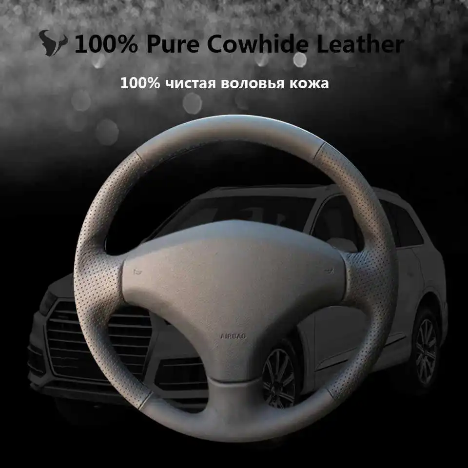Сшитый вручную черный чехол на руль из натуральной кожи для Peugeot 408 Peugeot 308
