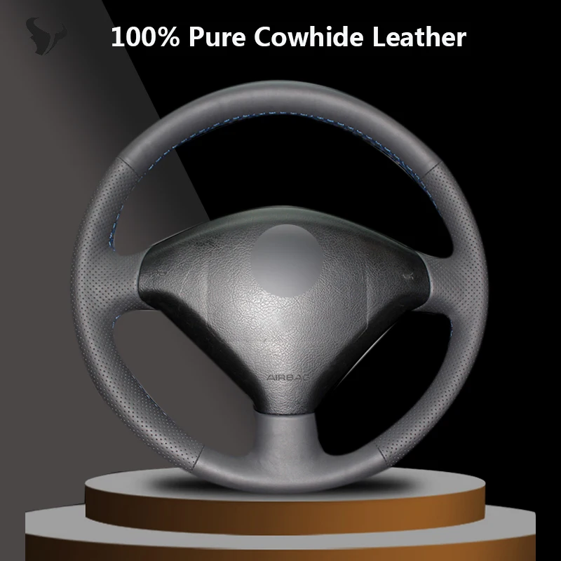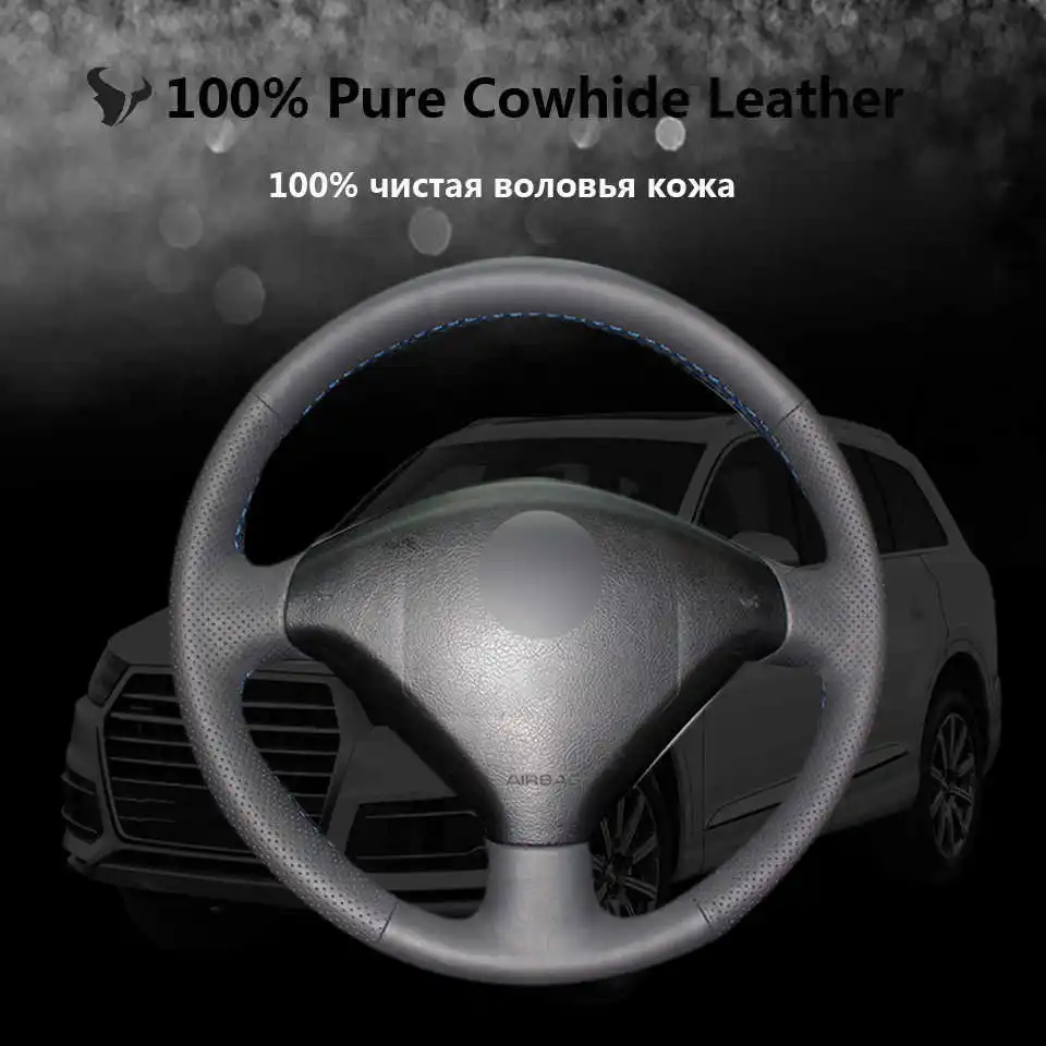 Черный чехол рулевого колеса автомобиля из натуральной кожи для Peugeot 307