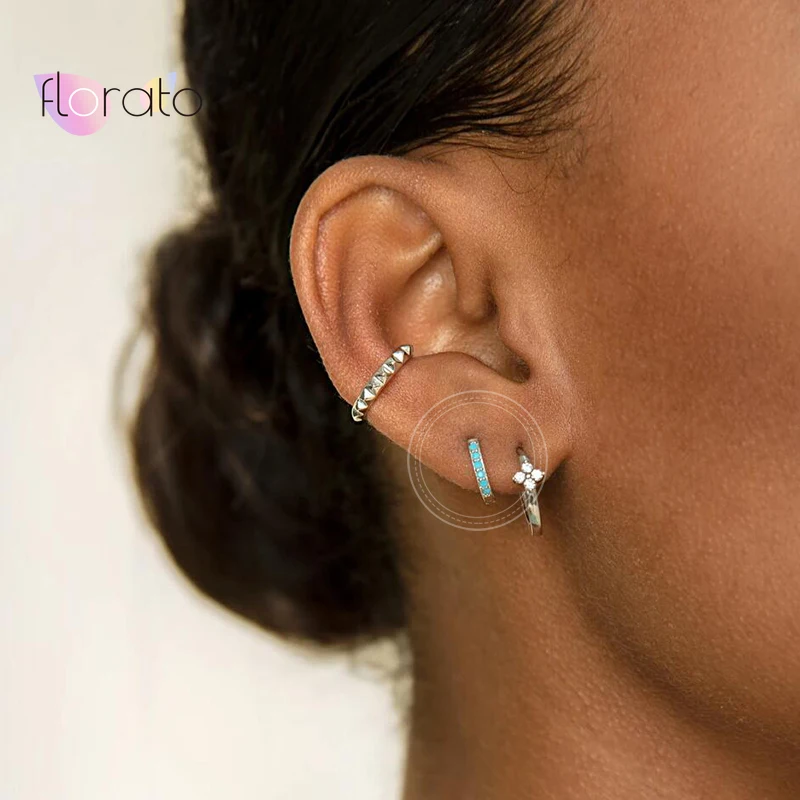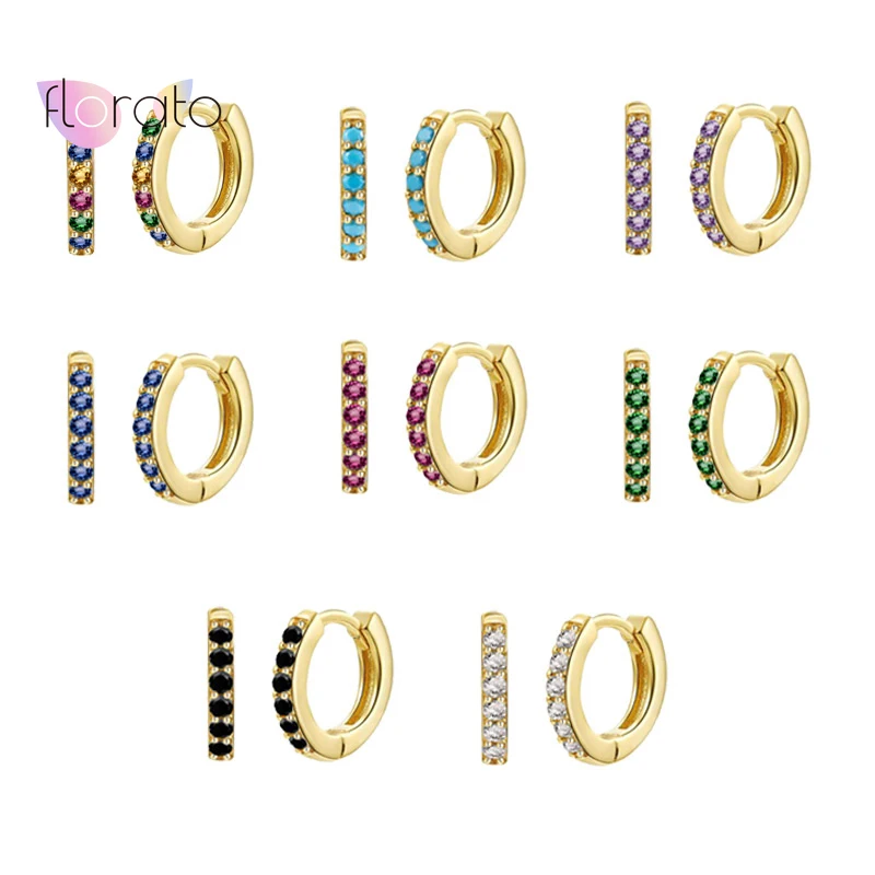 Женские серьги-кольца с радужнымибирюзовымилавандовымичернымизелеными кристаллами циркония, маленькие серьги для ушей из серебра 925 пробы, золото; Серебро; Сережки