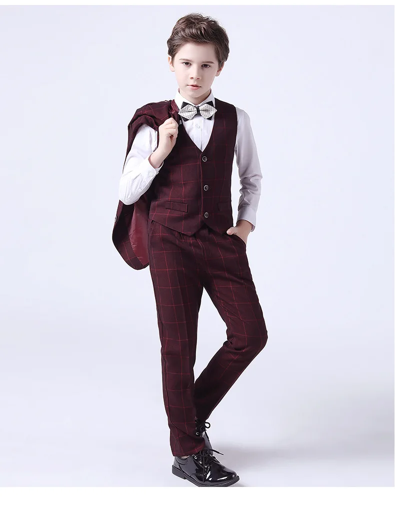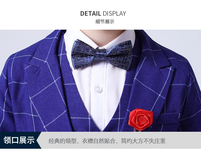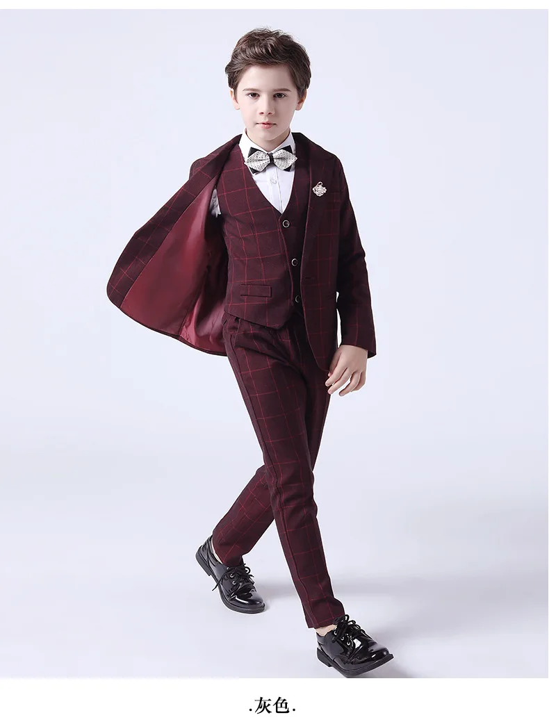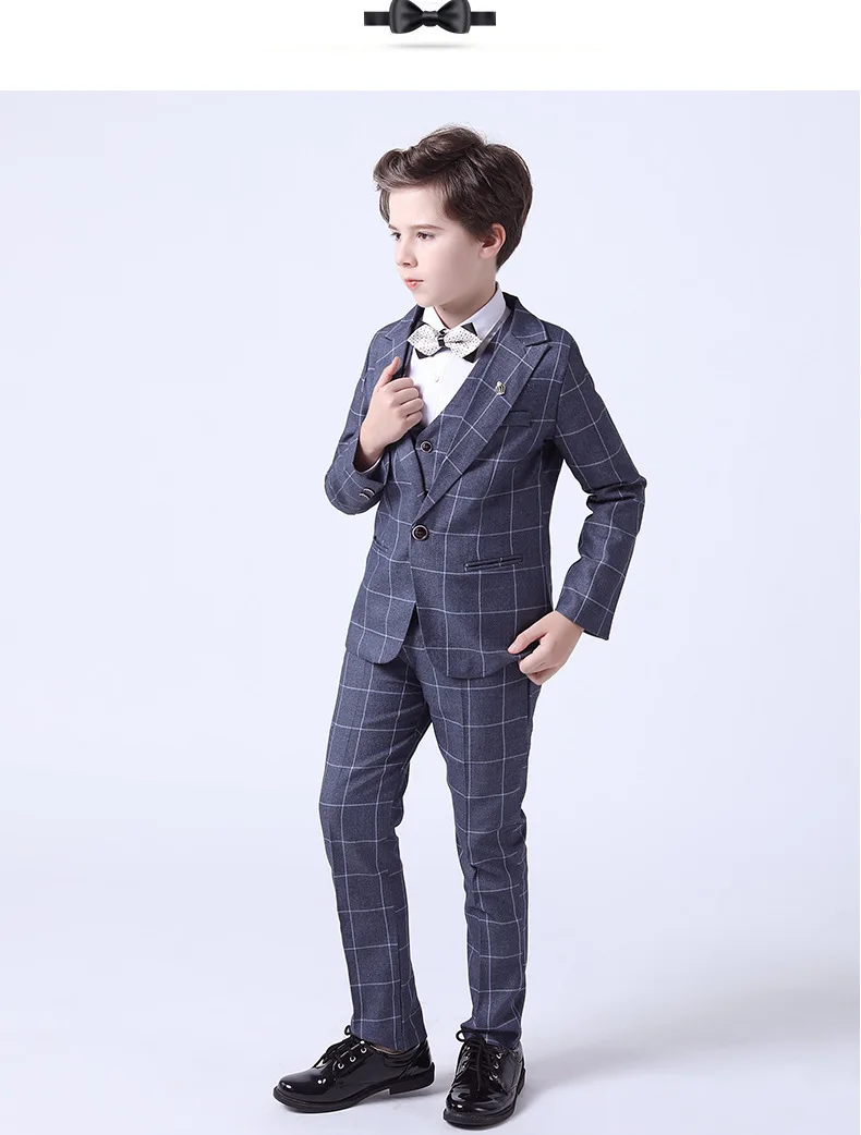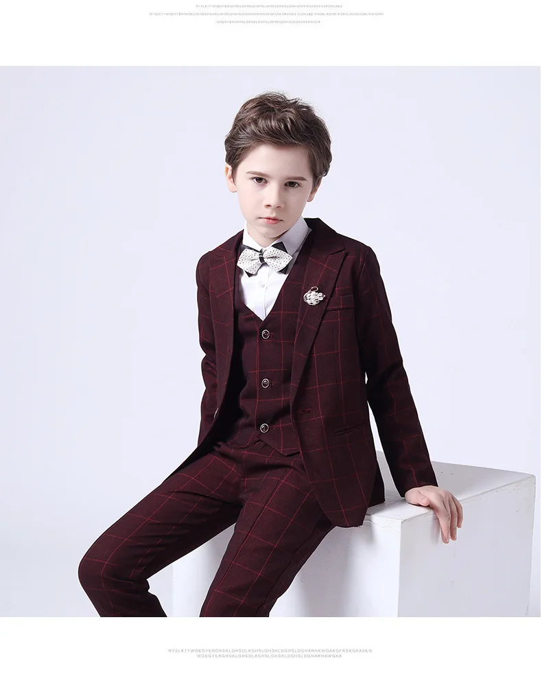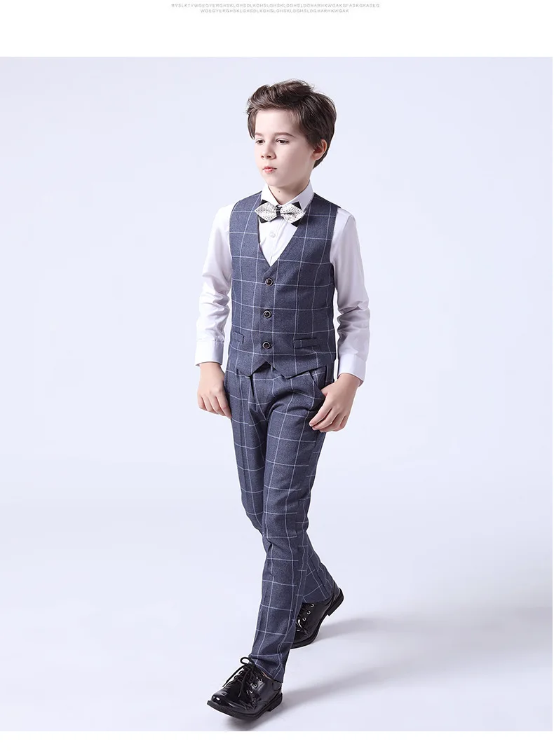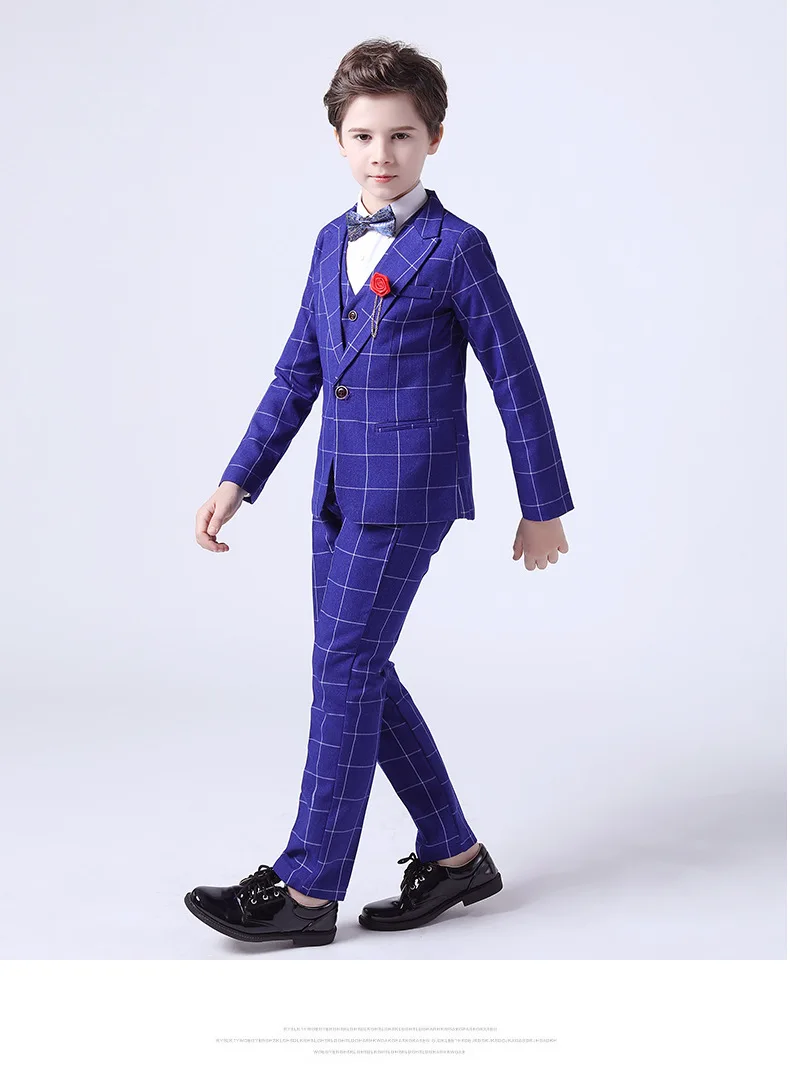 Торжественное детское платье в клетку; Костюм с цветочным узором для мальчиков; Блейзер; Жилет; Брюки; Комплект из 3 предметов; Детский костюм для свадебного представления