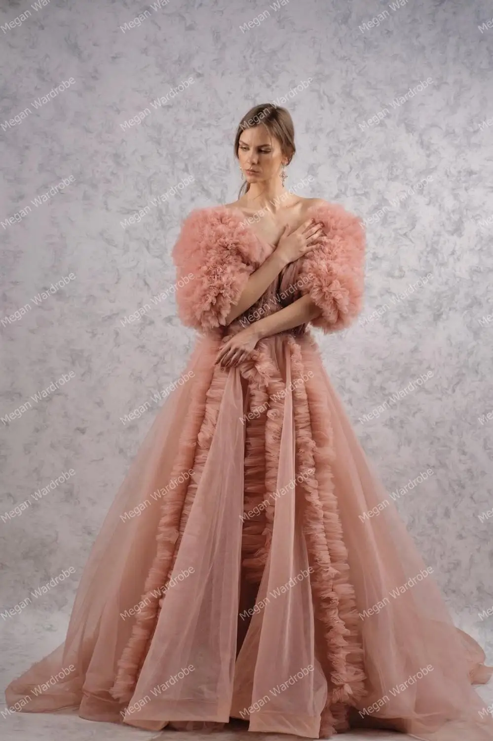 Уникальное пушистое Тюлевое верхнее пальто, женские макси платья с ...