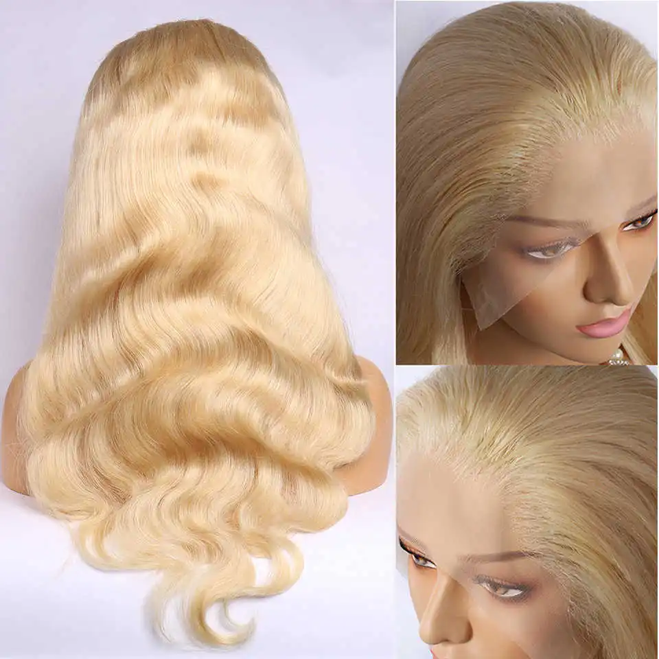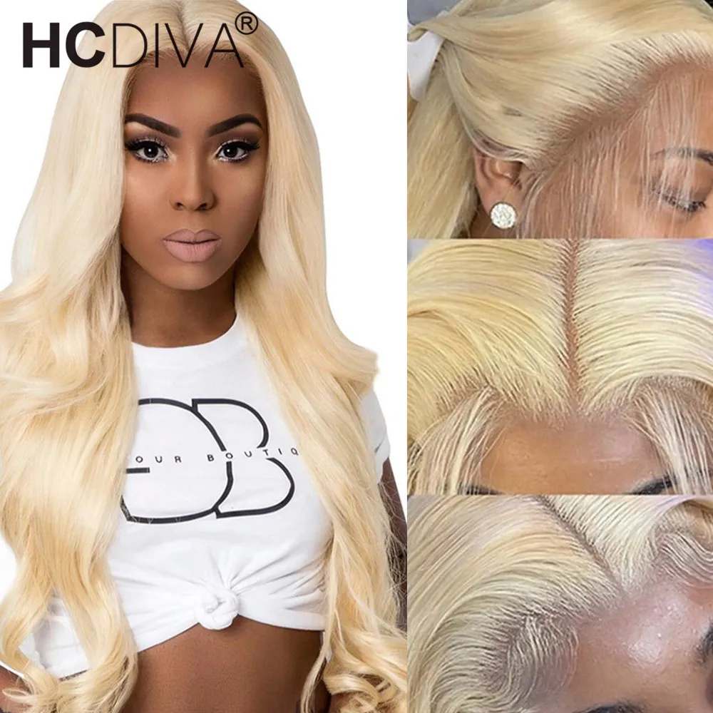613 парик блонд на сетке спереди, прямой парик из человеческих воло...