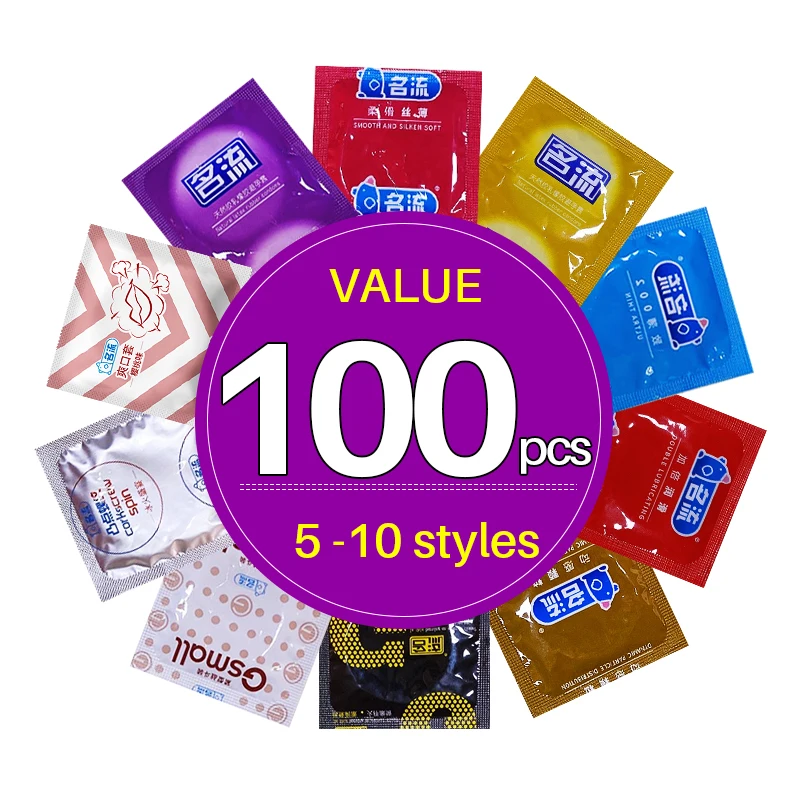 Презервативы из латекса 100200 шт., разные стили, большие частицы натурального латекса, огонь со льдом, полное масло, гладкие презерватив со смазкой, интимные игрушки для мужчин