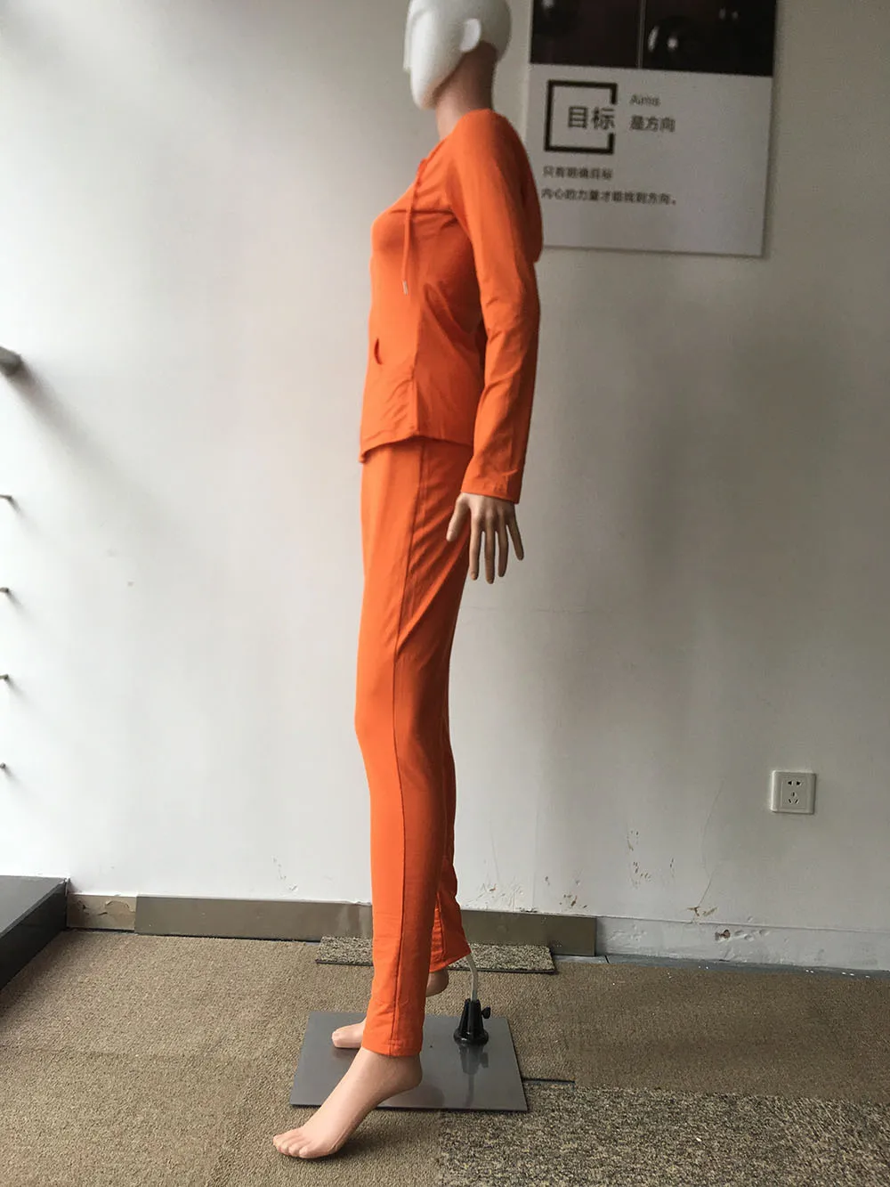 Женский комплект из двух предметов, топ с капюшоном и штаны, неонов...