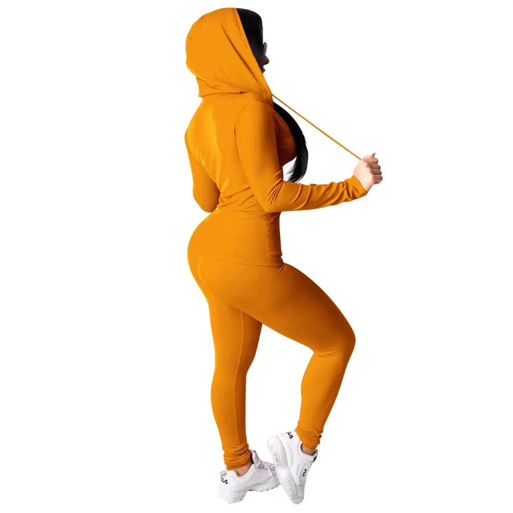 Модный комплект из двух предметов с капюшоном, женский топ на молни...