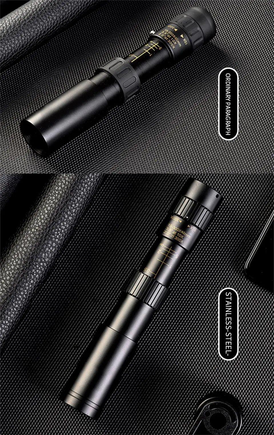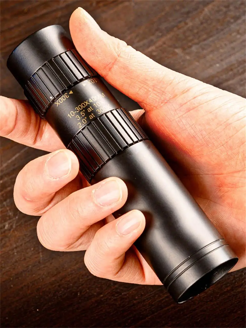 Magnification: 10-300 times Objective Diameter: 25mm Eyepiece diameter: 12mm Prism category: bak4 Coating: multilayer broadband green film Size: 12.7 x 3.2 x 3.2cm Anti-skid technology: Support Waterproof Technology: Support Folding technology: Support Zoom function: Support Tripod interface: Support Goal: 1. Business travel, outdoor sports, camping. 2. It has compact structure, light weight, and can be carried with you at any time. 3.Supports smart phone for taking photos and recording videos.
