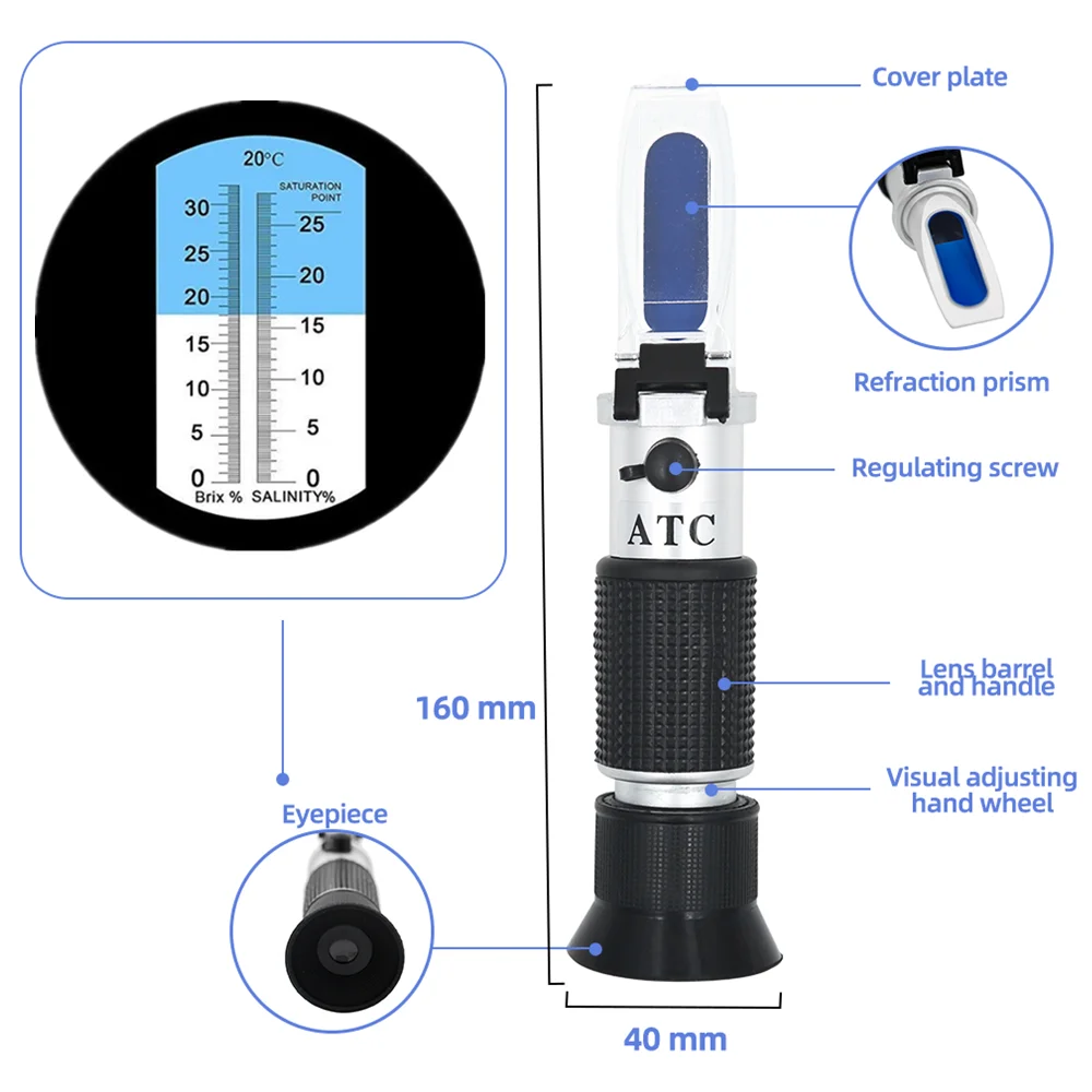 Рефрактометр Brix 2 в 1, рефрактометр Brix и солености, ATC 0-32% Brix и 0-28%, измерение солености хлорида натрия в пищевой соли