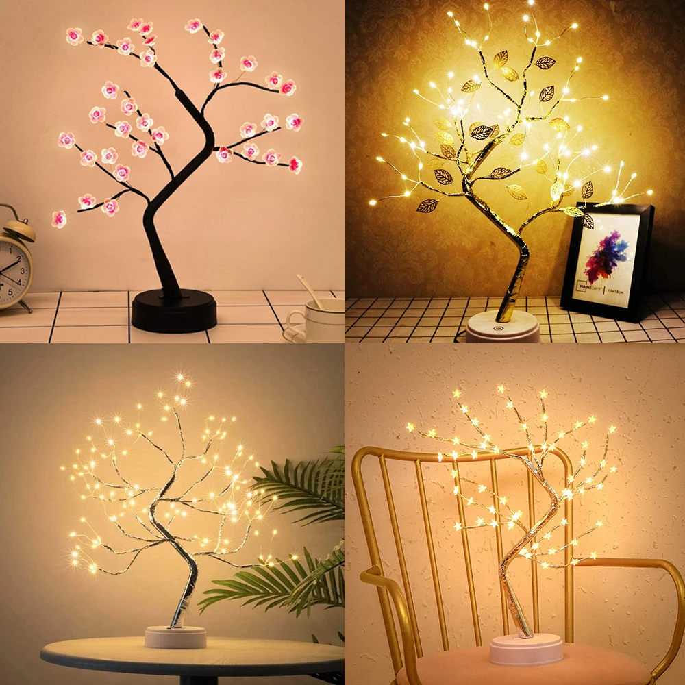 Лампа для дерева с сенсорным выключателемСветодиодный настольный светильник для дерева бонсайУкрашение для подарка дома свадьбы фестиваля праздника батареи/USB работает