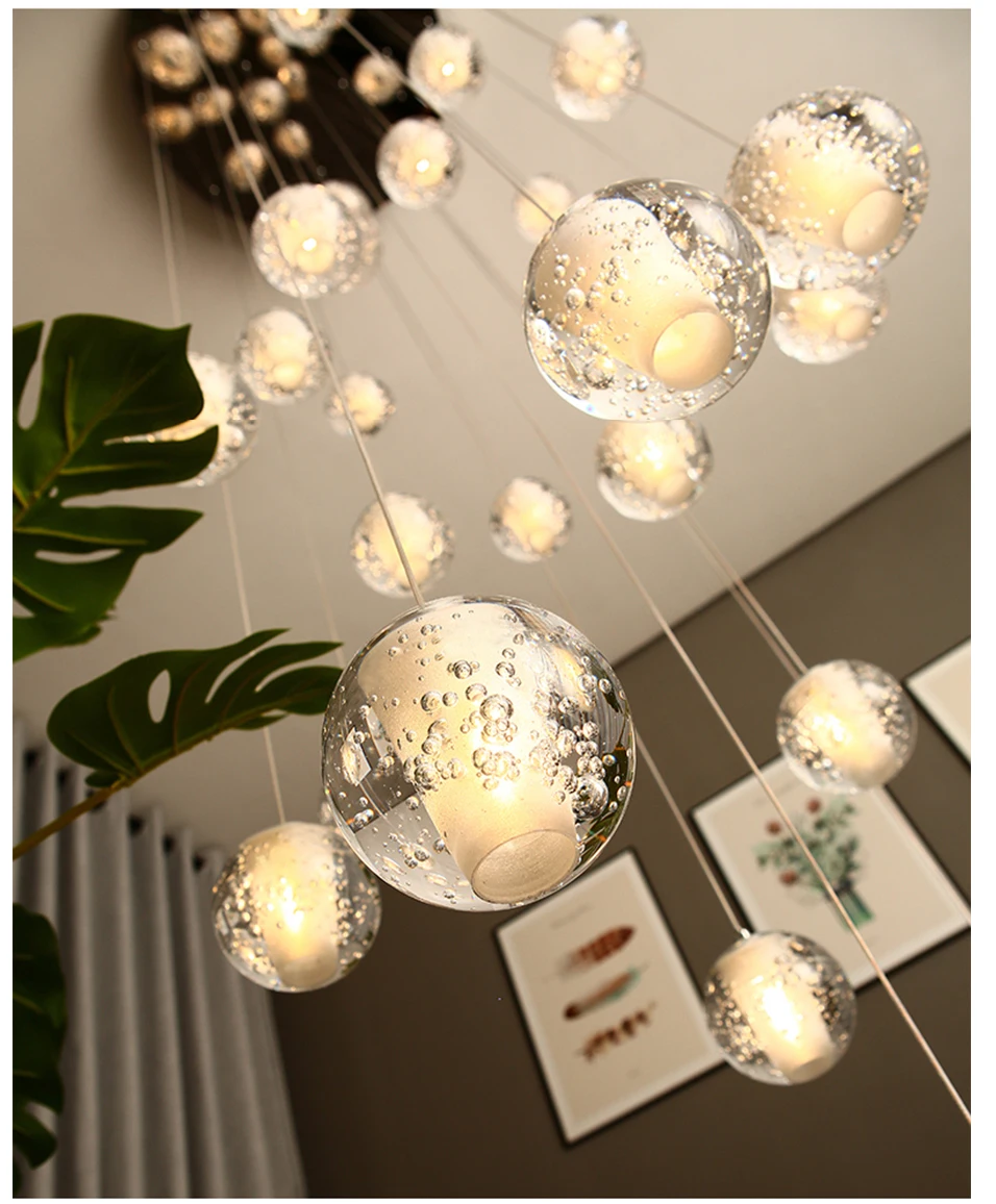 Современные подвесные светильники из хрустального стекла, светодиодные лампы с круглыми шариками, осветительные приборы, подвесные светильники для отелей и вилл