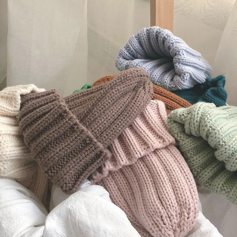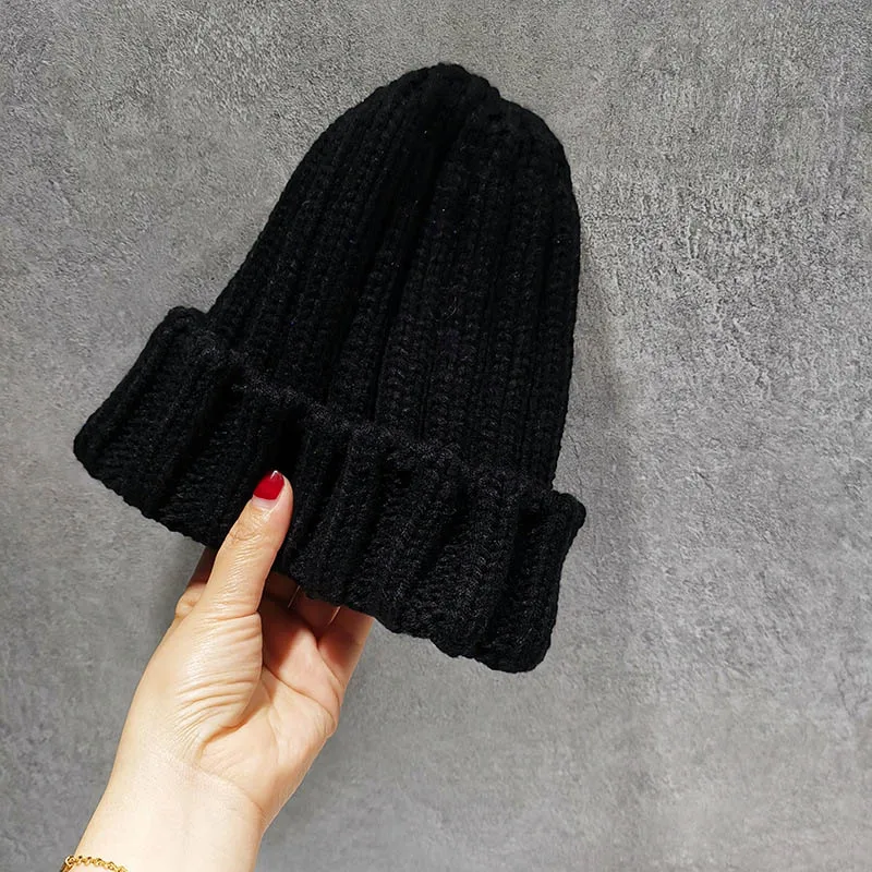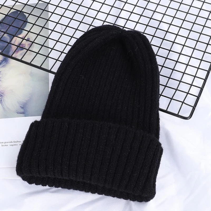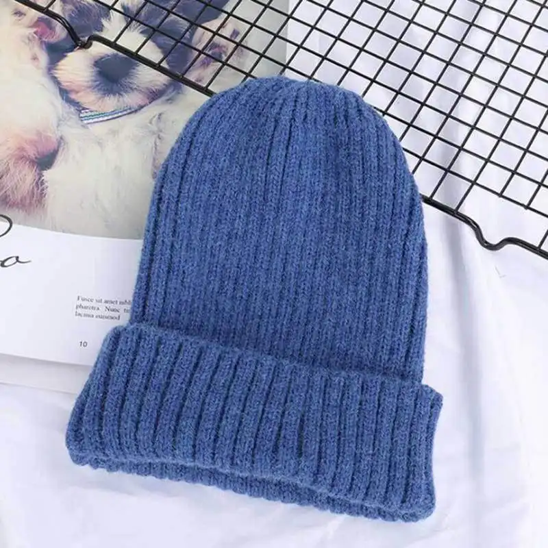 Шапка-бини Женская, вязаная, однотонная, в полоску, теплая, шляпа на зиму осень
