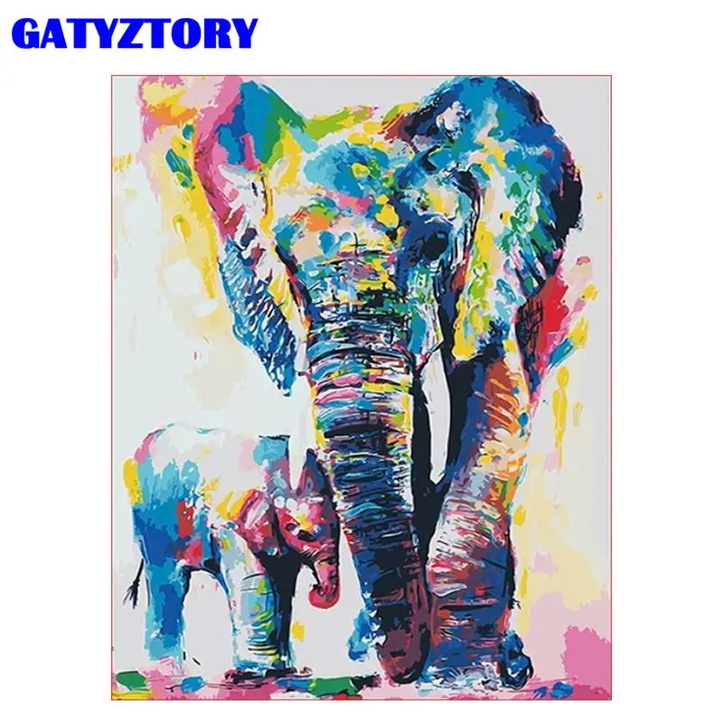 GATYZTORY живопись по номерам красочные слон животное картина по номерам ручная роспись Diy обрамление на холсте уникальный подарок Artcraft