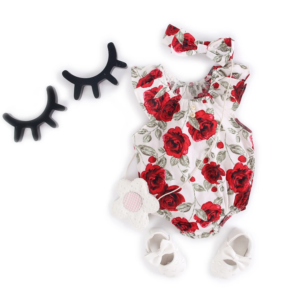 Sanlutozбоди с цветочным принтом для новорожденных; Милый боди для маленьких девочек + повязка на голову; Комплект из 2 предметов; Хлопковая летняя одежда для младенцев