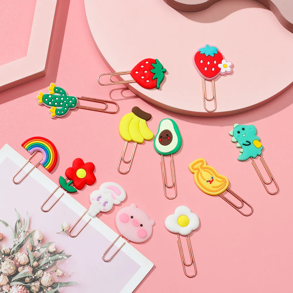 Милые животные Цветок Фрукты Декор бумажные зажимы закладки переплет для детей обратно в школу учителя офисные принадлежности подарки организовать клип
