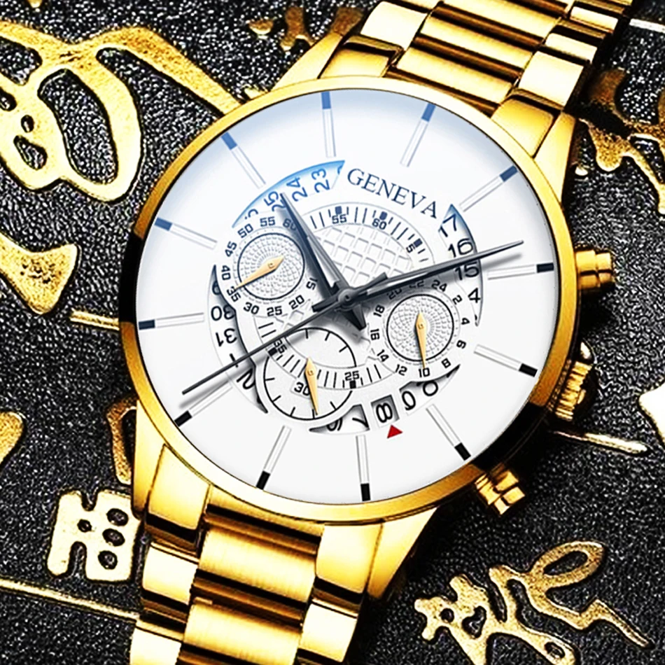 Новинка 2021, роскошные деловые модные мужские часы Geneva из нержа...