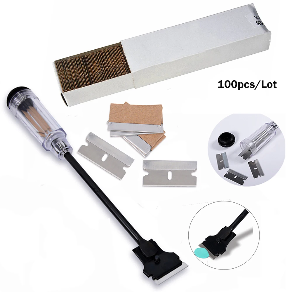 EHDIS 100 шт. 1,5 "лезвия для бритвы + стекло для духовки очищающий длинный скребок Виниловая пленка для отделки автомобиля инструмент для удаления стикеров