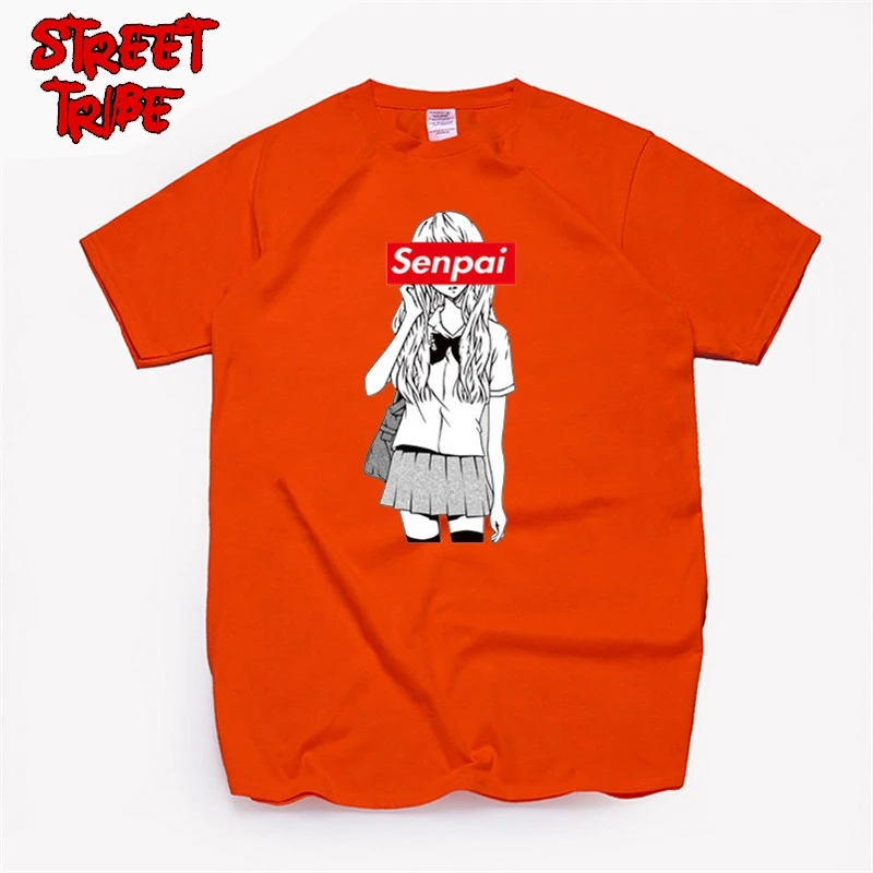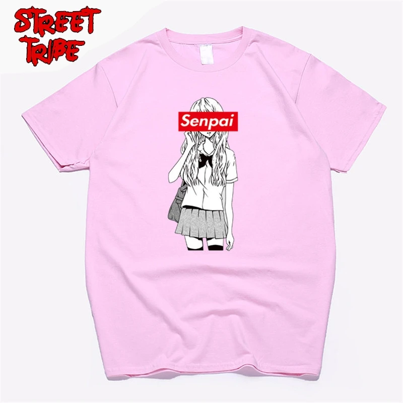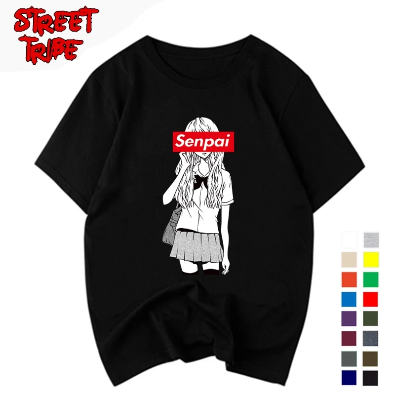 Футболка мужская хлопковая с принтом девушки Сэмпай, уличная одежда с принтом манга, рубашка в японском стиле унисекс, одежда в стиле Харадзюку, черный цвет