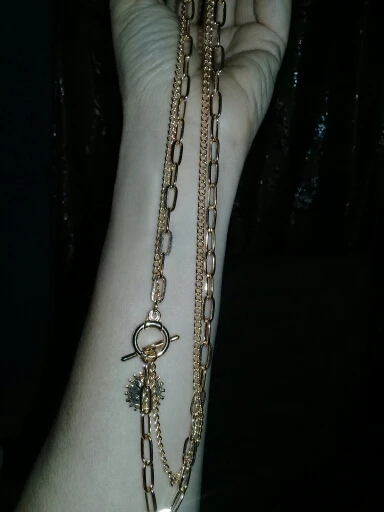 Две цепочки, раздельные, можно носить отдельно. Полностью соответствует фото продавца. Цепи металлические, но сплав очень лёгкий. Цвет металла приятный, не яркожелтый. Покупала по цене меньше 1,5 доллара. За такую цену прекрасные изделия. В Украину пришли быстро. Рекомендую и продавца,и украшения.