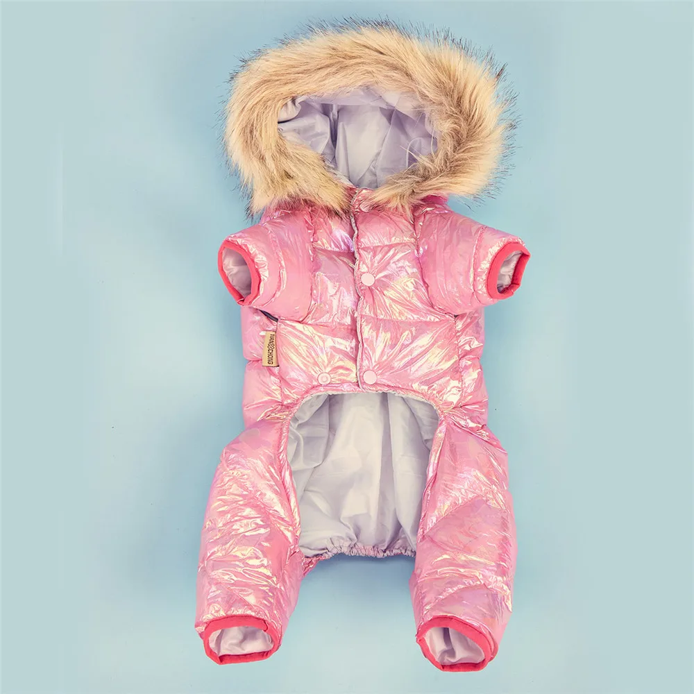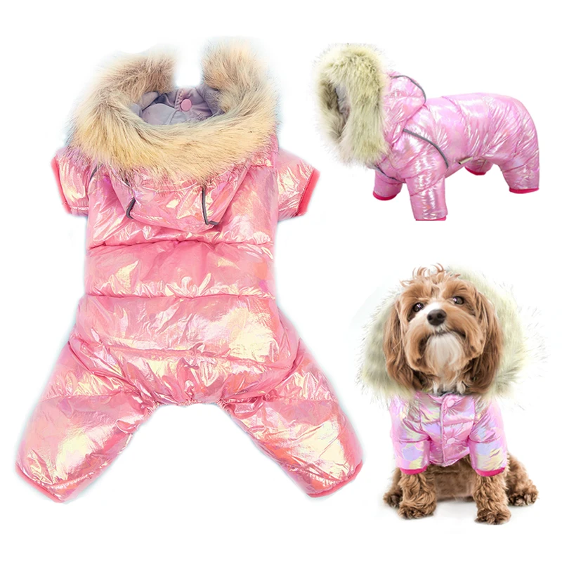 Зимняя одежда для собак для маленьких собак, роскошный меховой воротник, Комбинезоны для собак, водонепроницаемый Зимний комбинезон с капюшоном для собак, теплая Женская одежда для домашних животных