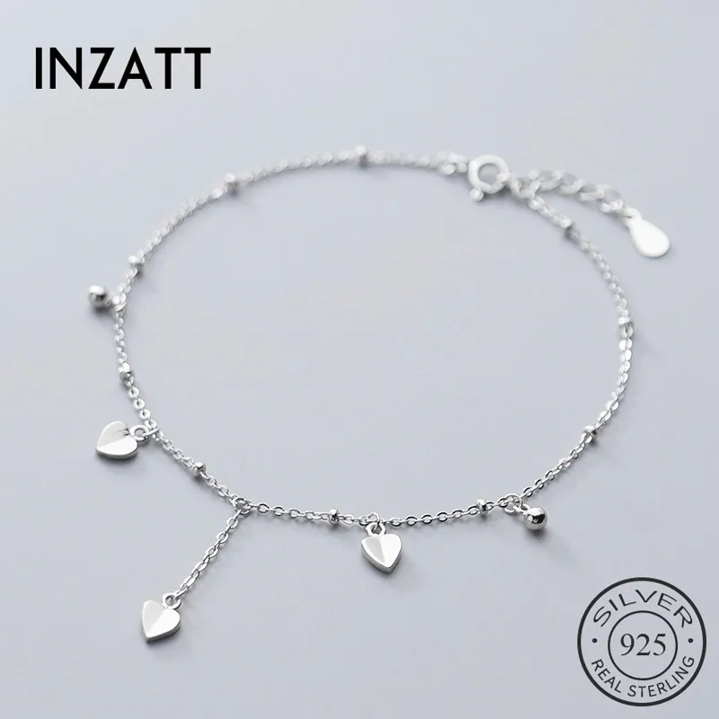 INZATT, Настоящее серебро 925 пробы, браслет из бисера с кисточками в форме сердца для женщин, вечерние, минималистичные ювелирные изделия, милые аксессуары, подарок