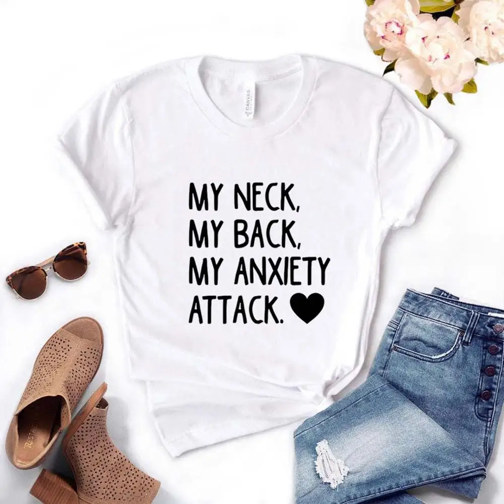Женская хлопковая Футболка с принтом My Neck My Back My worry Attack, повседневная забавная Футболка для леди, Юн, хипстерская футболка, FS-224