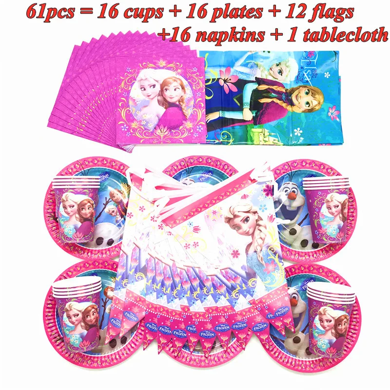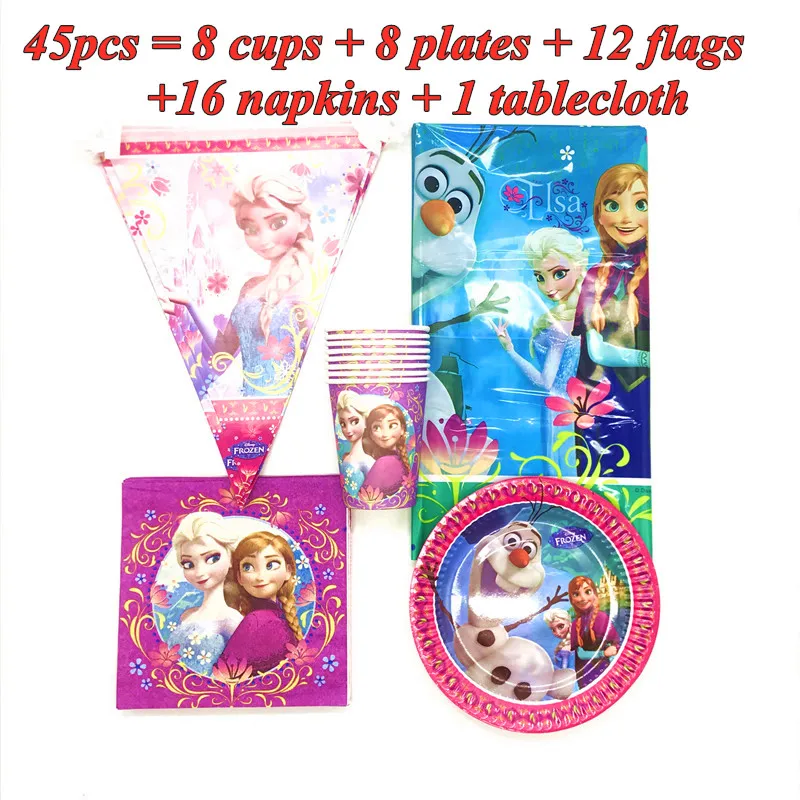 Disney, товары для вечерние Холодное сердце, флагами, салфетками, скатерти для детей, девушек, Снежная королева, Наборы украшений для вечеринки на день рождения