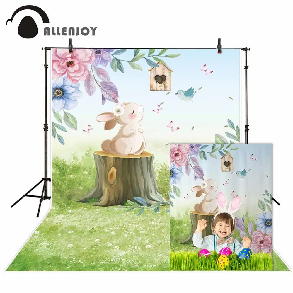 Фон для фотосъемки Allenjoy с изображением кролика, весенней травы, цветов, сказочный фон для детской фотосъемки