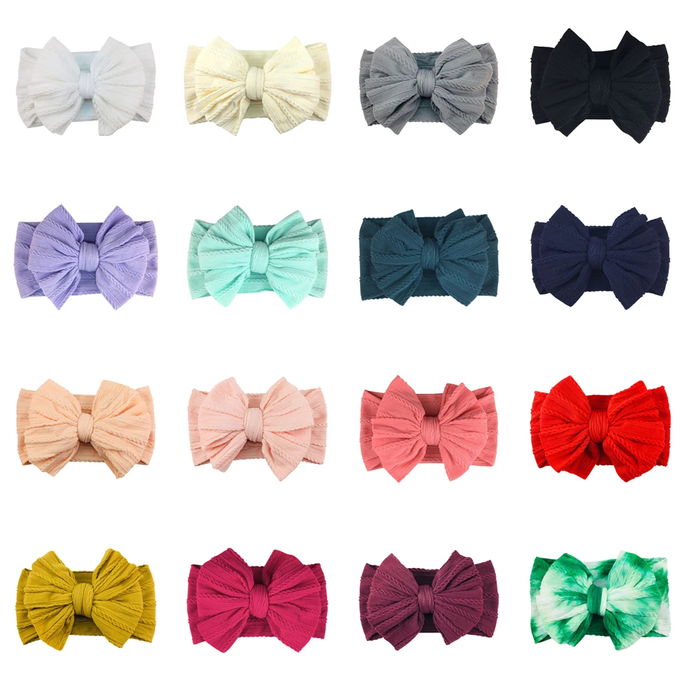 Повязка на голову из нейлона в рубчик, 16 шт.лот, 2020, детская чалма из нейлона, для маленьких девочек, с узлом, бантики, аксессуары для волос