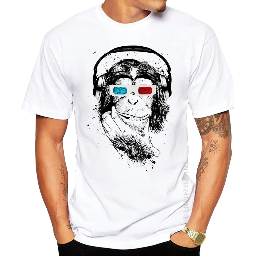 Мужская футболка с принтом бананов для мысли, Повседневная футболка с коротким рукавом, хипстерская Футболка с принтом музыкальной обезьяны, хлопковые топы с круглым вырезом