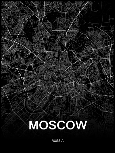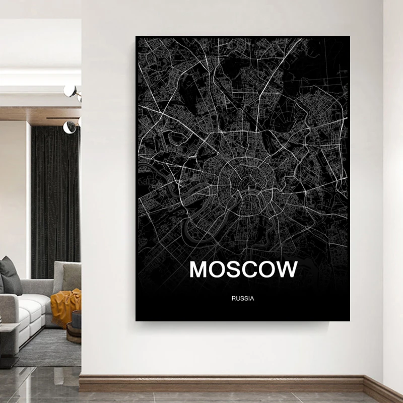 Плакат с картой Московского города России, дорожная печать, черно-б...