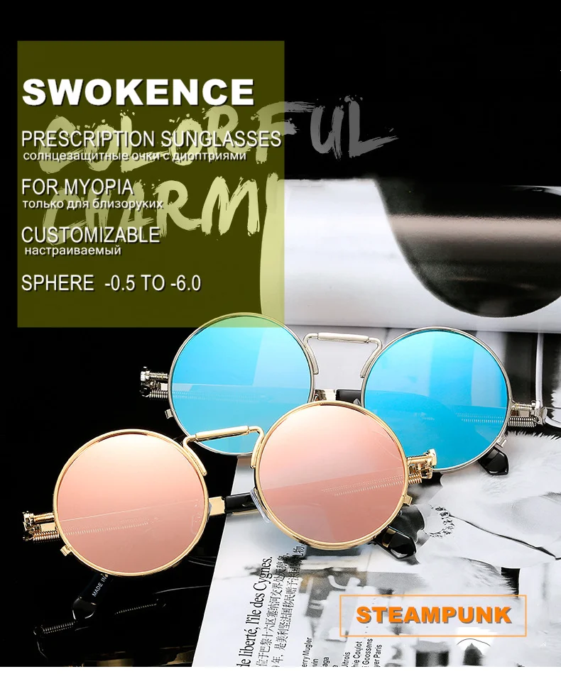 Солнцезащитные очки SWOKENCE SA19 для мужчин и женщин, поляризационные аксессуары для близорукости, в круглой металлической оправе, от-0,5 до-6,0