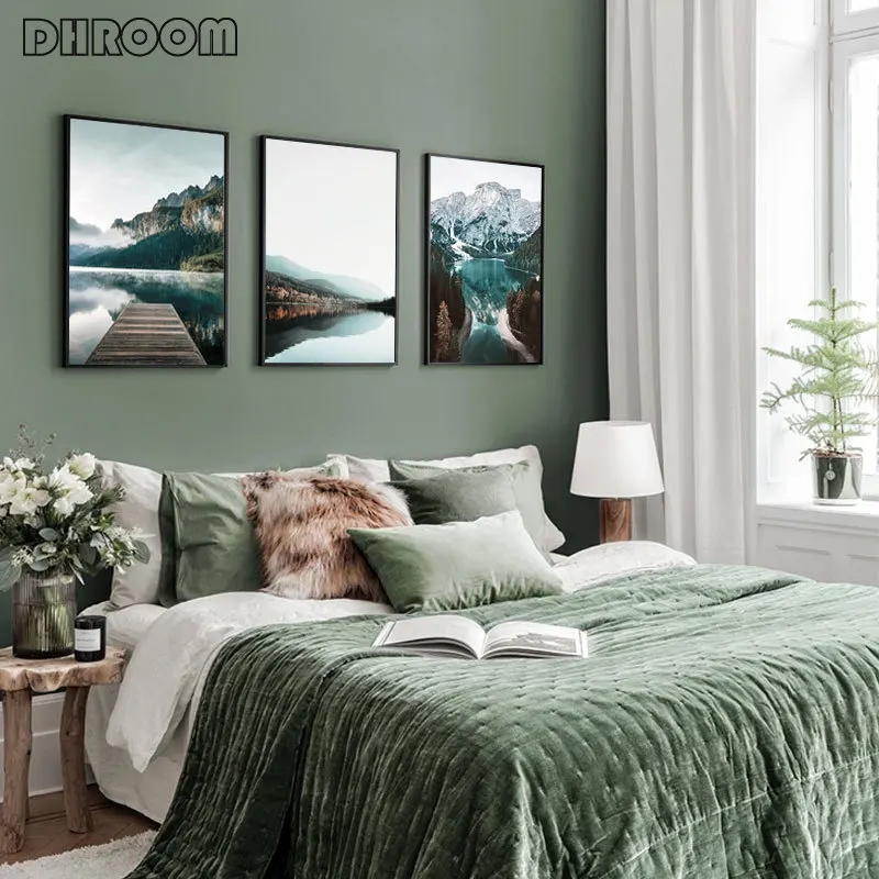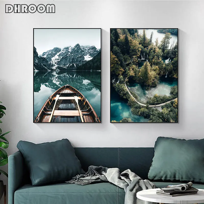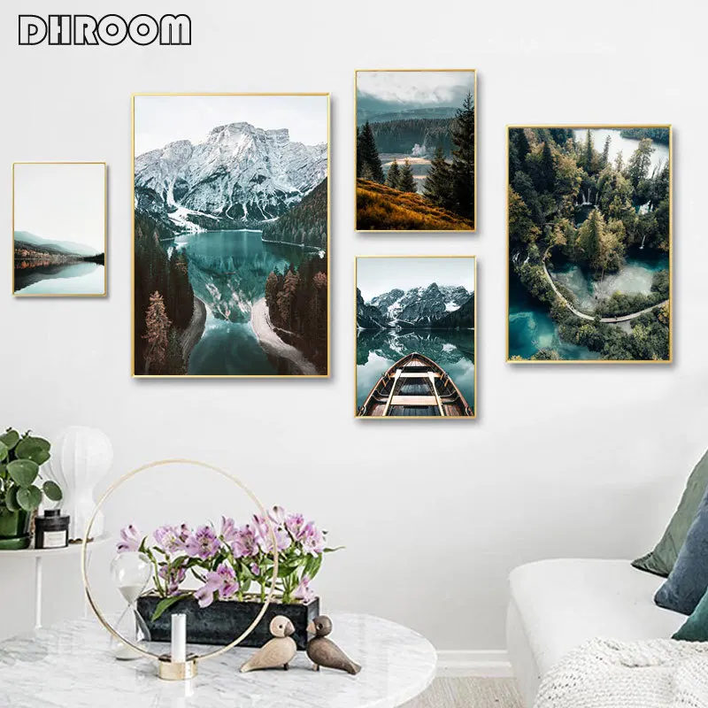 Картина с изображением природного пейзажа лесная Гора плакат с озером в скандинавском стиле, художественная картина, настенные картины, украшение для дома