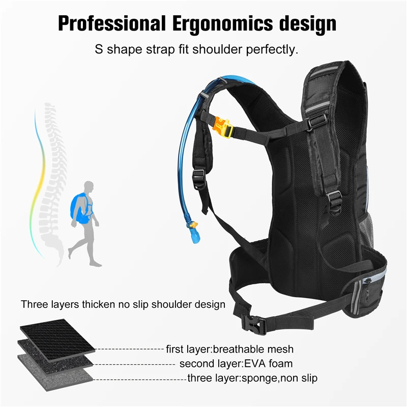 Материал: нейлон Цвет: черно-серый/черно-зеленый/черно-оранжевый/черно-желтый (опционально) Емкость: About10L Вес: около 280 г Размер: 40*26*9 см Сцены: Велоспорт, альпинизм, путешествия, туризм и так далее