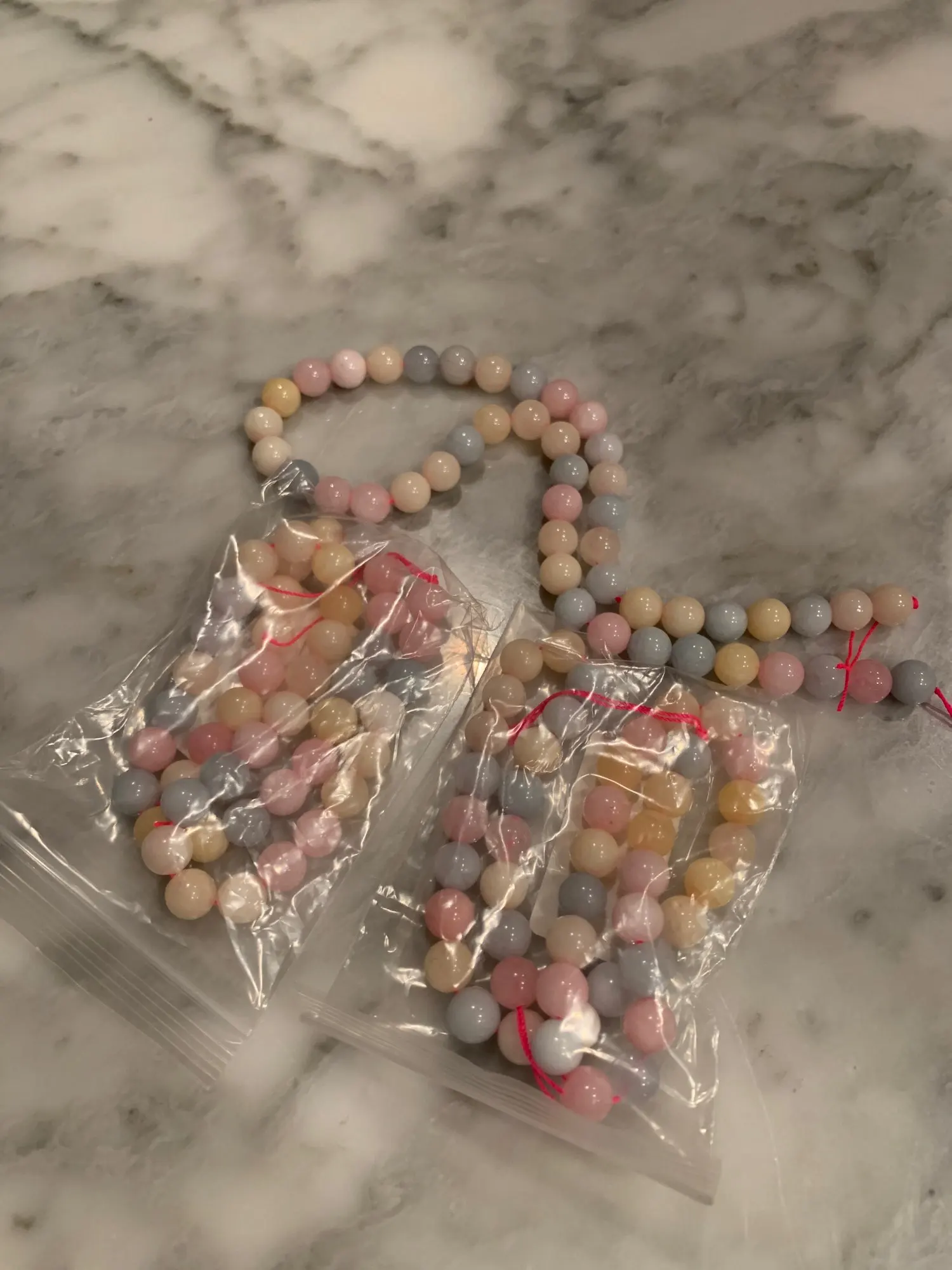 Бусинки очень красивые и нежные, холодные на ощупь, разных оттенков