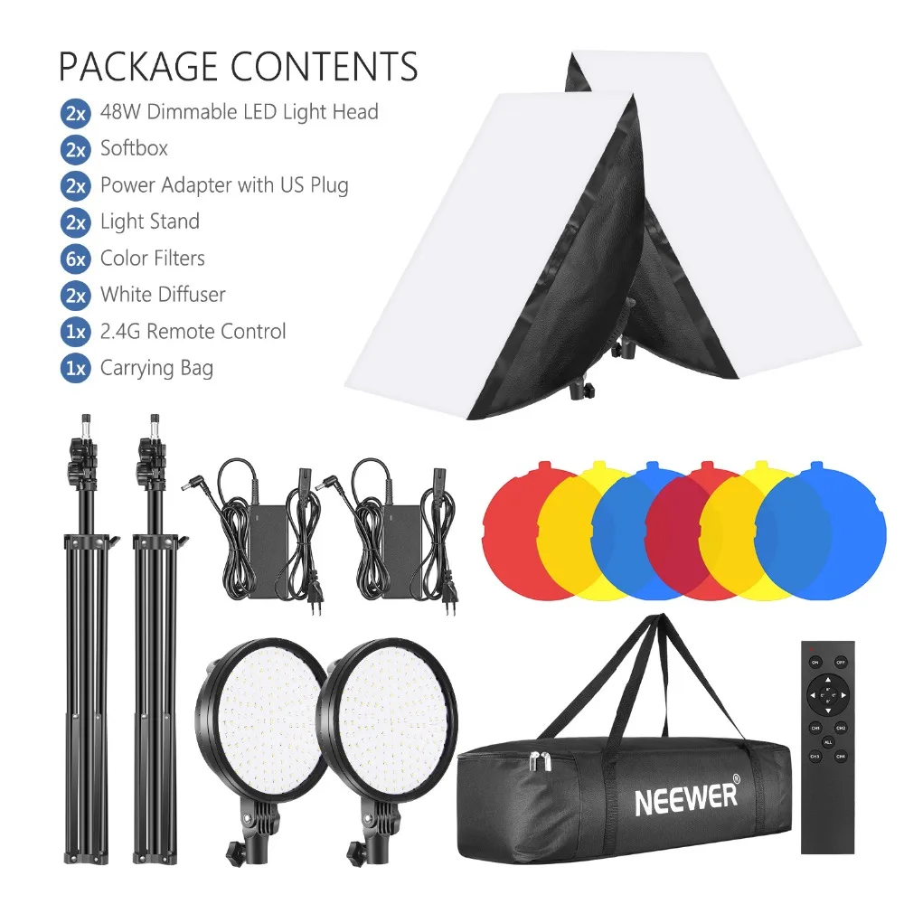 Набор светодиодных софтбоксов Neewer, 2 шт., 2,4 г, с цветным фильтром: софтбокс 20x28 дюймов, 3200-5600K, 48 Вт, приглушасветодиодный Светодиодная головка, европейская вилка