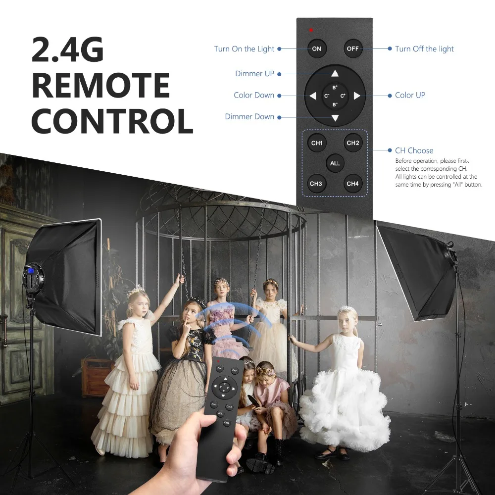 48 Вт светодиодные лампы с регулируемой яркостью, Цветовая температура (3200K-5600K) и яркость от 10%-100% можно легко отрегулировать с помощью ручки на световой панели или через 2,4G пульт дистанционного управления.
