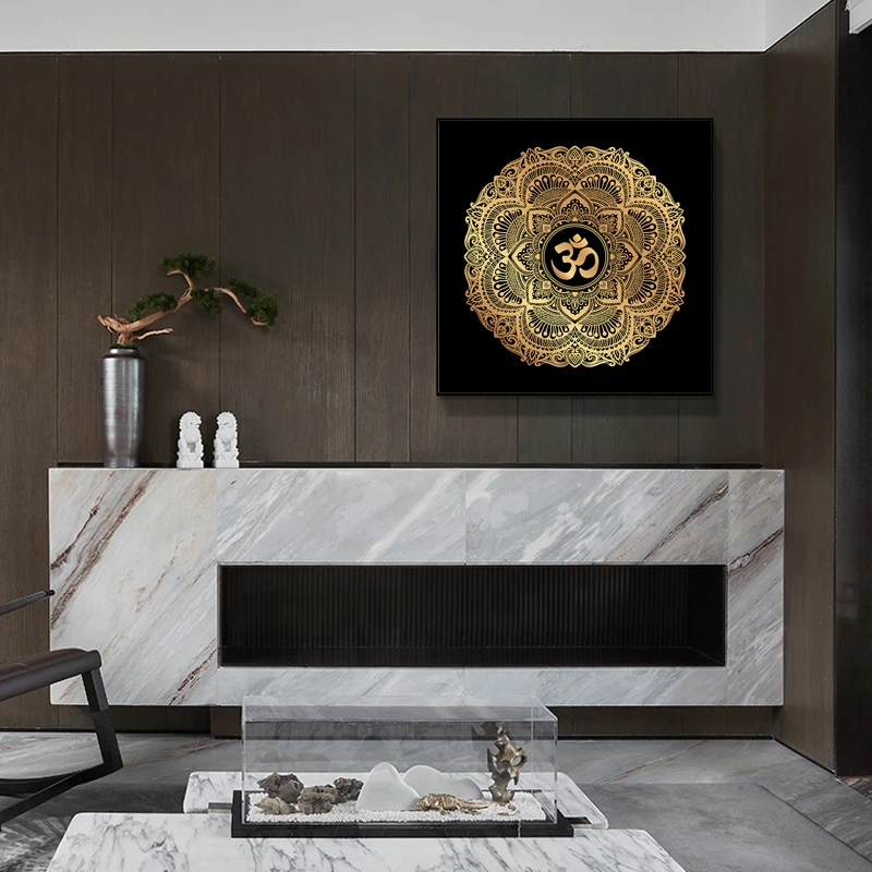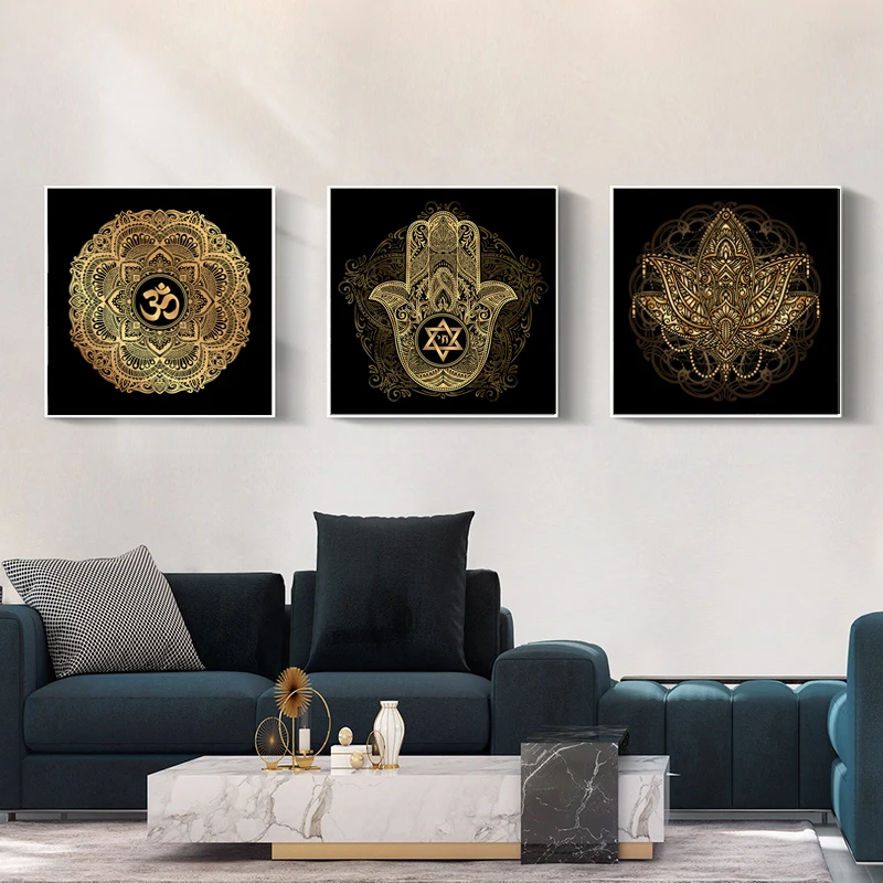 Золотая и черная Мандала Лотос Искусство Холст Картина на стену постеры принты религия настенные картины для декора гостиной