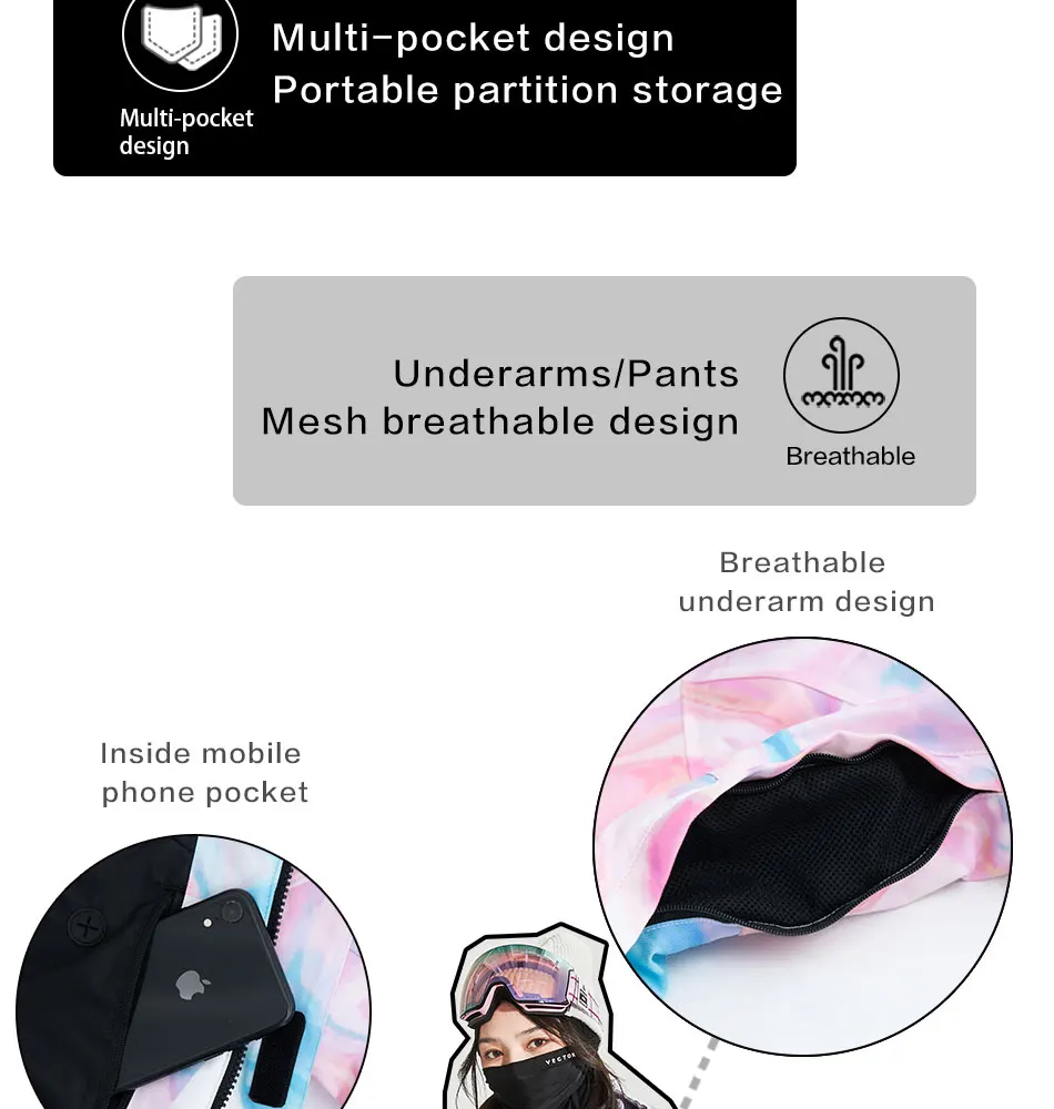 Куртка лыжная, мужская, женская, зимняя, ветрозащитная, водонепроницаемая