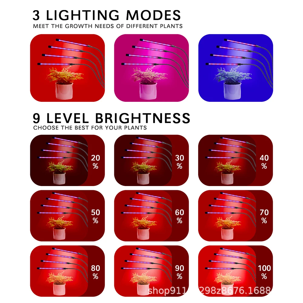USB Grow светильник Descritpion: Срок службы: 50000 часов 3 режима таймера-3 часа, 6 часов и 12 часов. 5 режимов яркости с регулируемой яркостью Изготовлен из алюминия и ПВХ, легкий и прочный с хорошей теплоотдачей. Низкое потребление и экологичность. 360deg гибкие goosenecks позволяют регулировать любое направление или область освещения. Рабочее широкое напряжение: 5 В постоянного тока USB; Частота: 50/60 Гц; Сертификаты: CE, ROHS, FCC