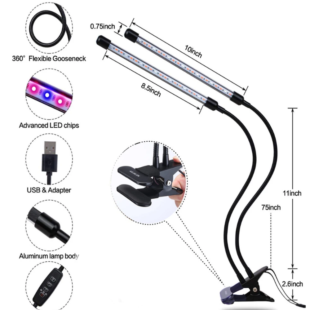 1 шт. с двумя головками Красный Синий 18 Вт USB СВЕТОДИОДНЫЙ светильник для выращивания Или 1 шт. Три головки красный синий 27 Вт USB СВЕТОДИОДНЫЙ светильник для выращивания Или 1 шт. четыре головки красный синий 36 Вт USB светодиодный светильник для выращивания