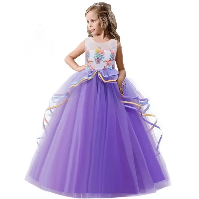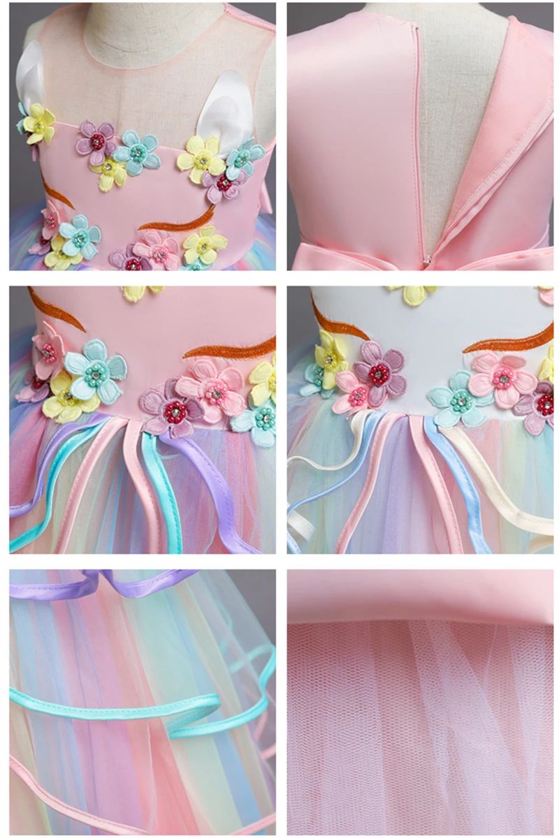 Платье-пачка с единорогом для маленьких девочек, летнее элегантное праздничное платье без рукавов, детское нарядное свадебное платье, костюм с вышивкой на день рождения
